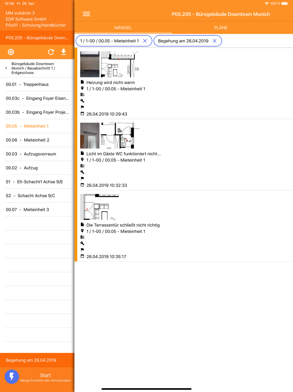 • multimediale Vor-Ort-Erfassung von Mängeln