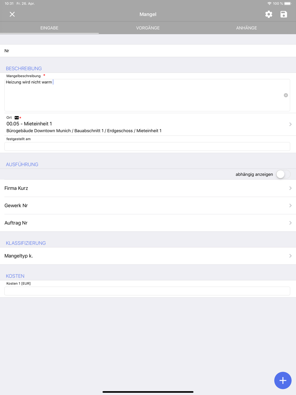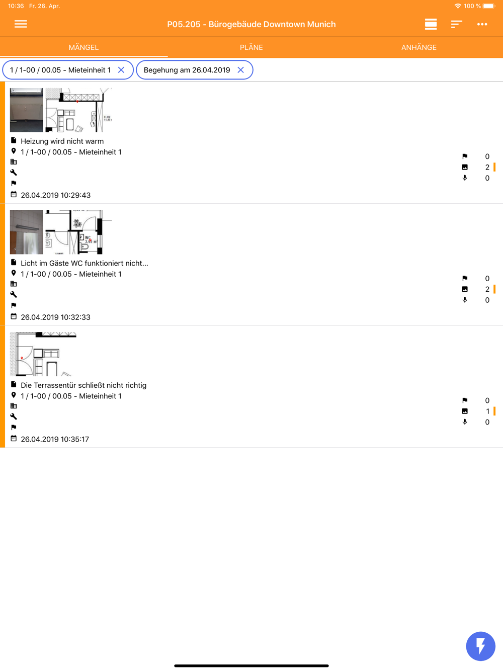 • Anhänge (Fotos, Pläne, Sprachaufnahmen)