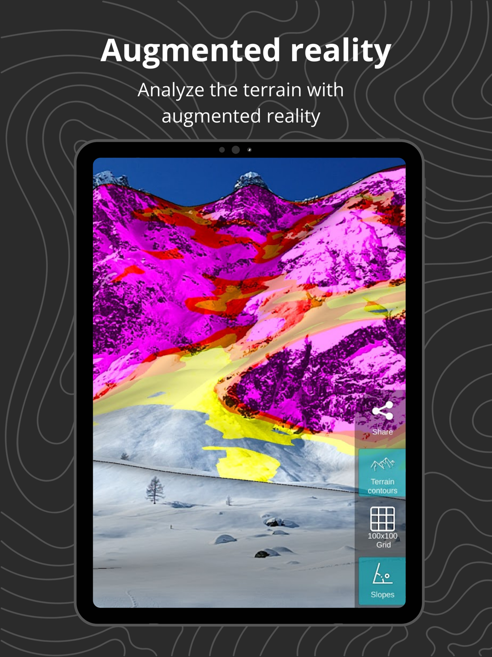 The app features slope angle shading, providing a minute understanding of the terrain before heading into the great wide open.
