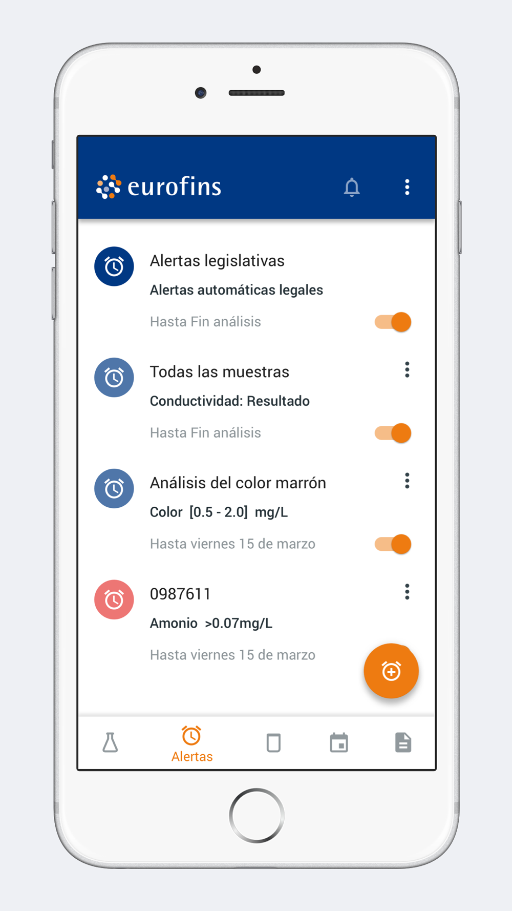 Alertas. El usuario puede recibir notificaciones de los resultados de las muestras, alertas legislativas o de análisis.