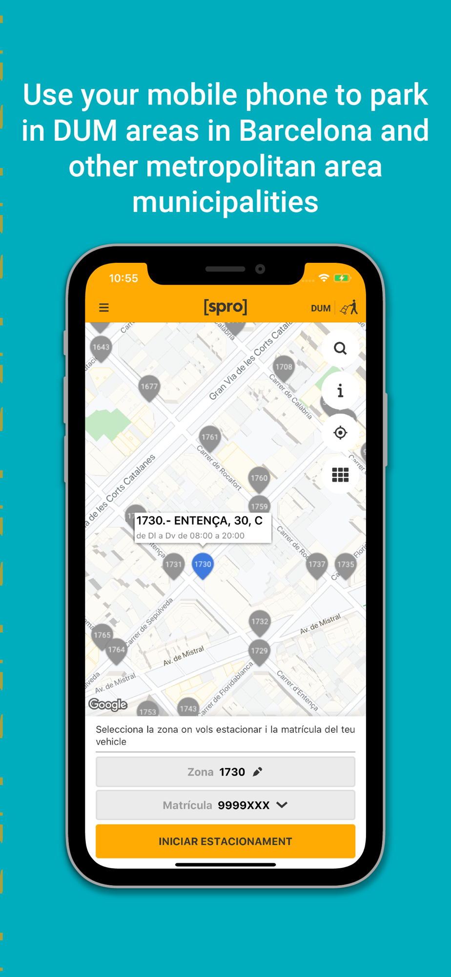 SPRO is the application for professionals which you can use to park conveniently and easily in DUM parking places in the Barcelona Metropolitan Area and the Bus Zone areas in the city.
