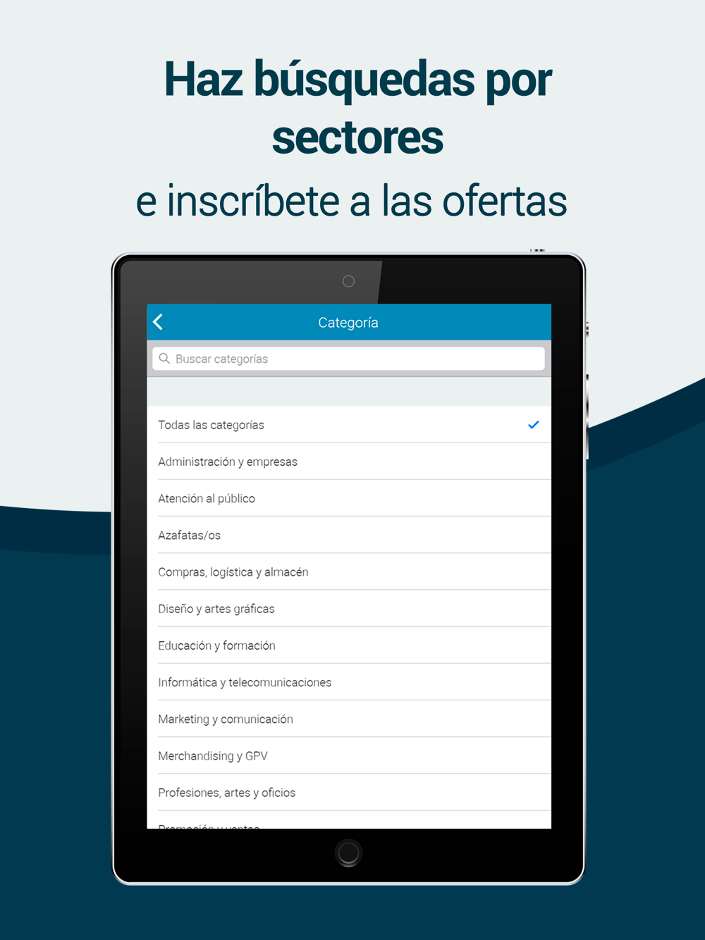 3. Haz búsquedas por sectores e inscríbete en las ofertas.