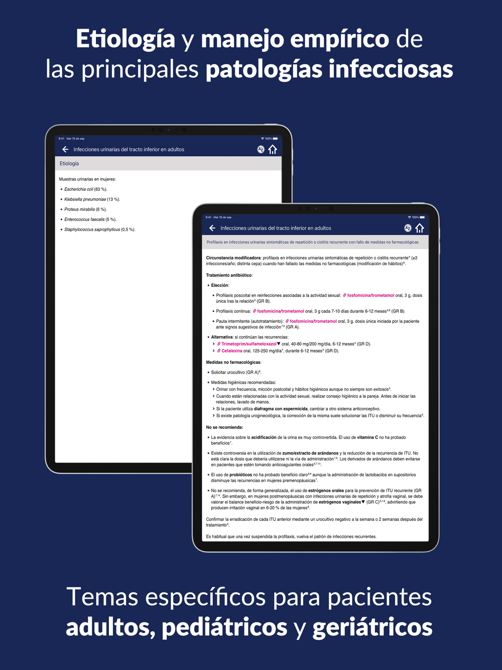 • Recomendaciones basadas en la evidencia y en patrones de resistencia.