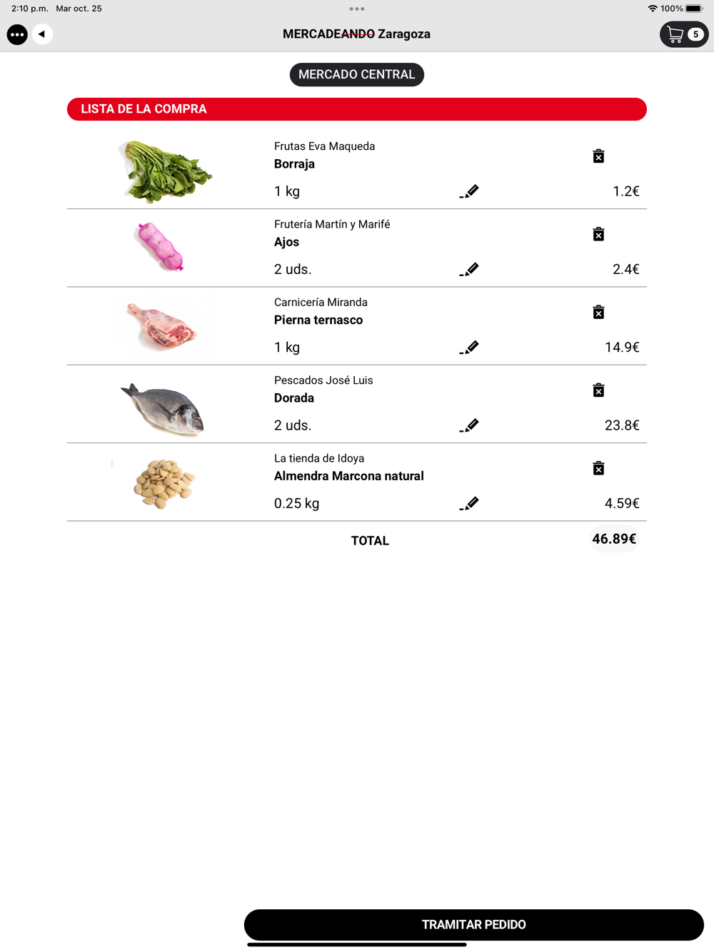Aplicación móvil pública para realizar compras online en los diferentes mercados de Zaragoza.