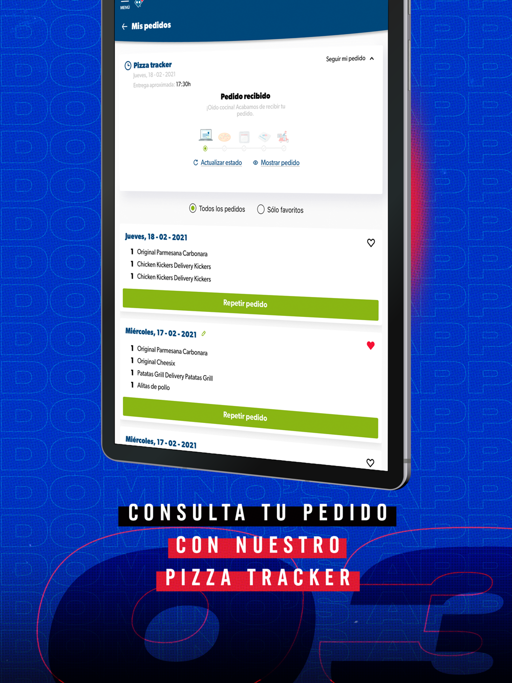 ● Sigue en tiempo real el estado de tu pedido con nuestro Pizza Tracker.
