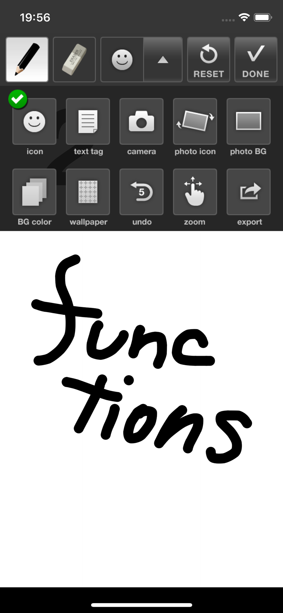 Using it is very simple. Tap on a day shown in the calendar screen to expand a cell. Then hand write directly into it. You can also use any of the ten prepared functions to easily create your own original calendar. You can paste in photos, enter text in tags, and decorate nicely with icons and wallpaper.