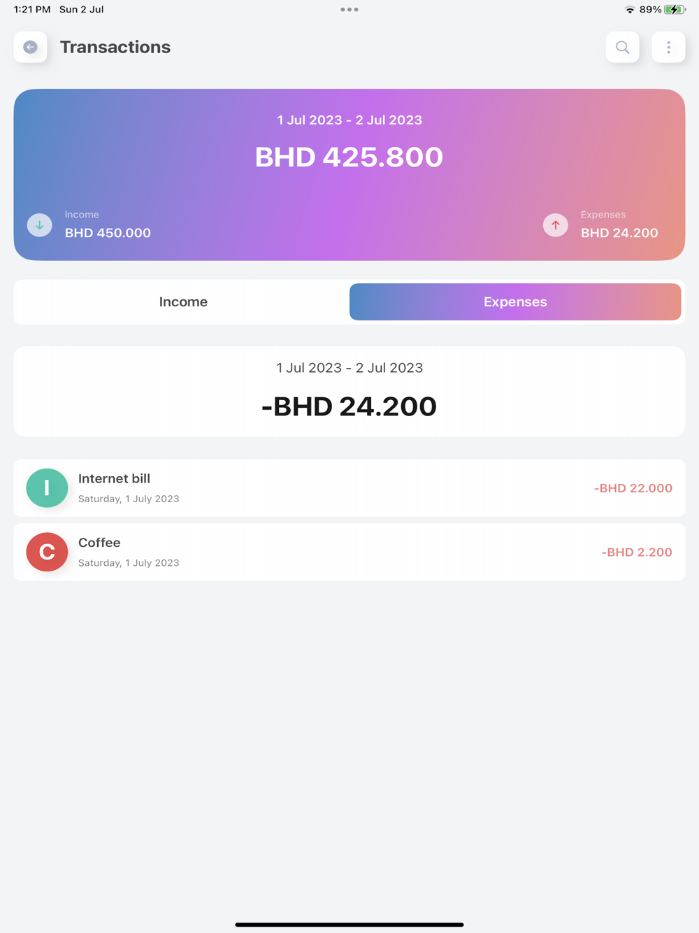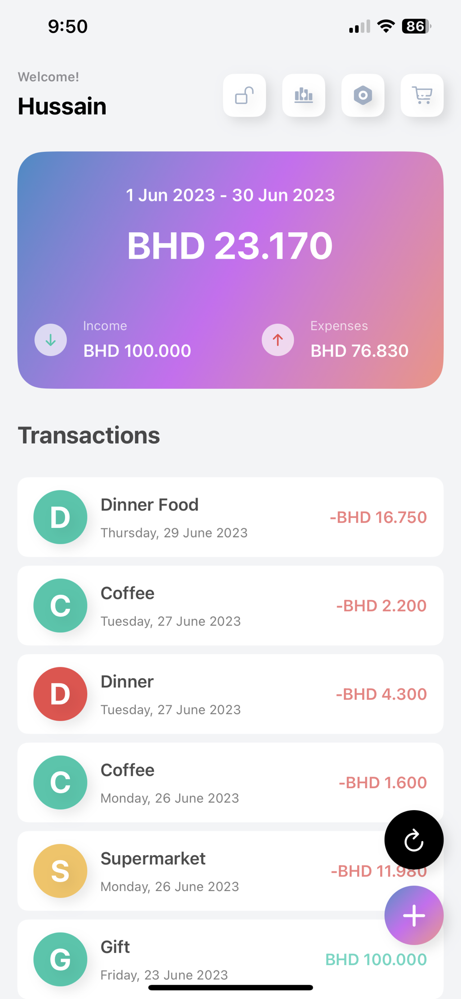 * Informative Statistics: Gain valuable insights through detailed statistics and charts to better understand your spending habits and trends.