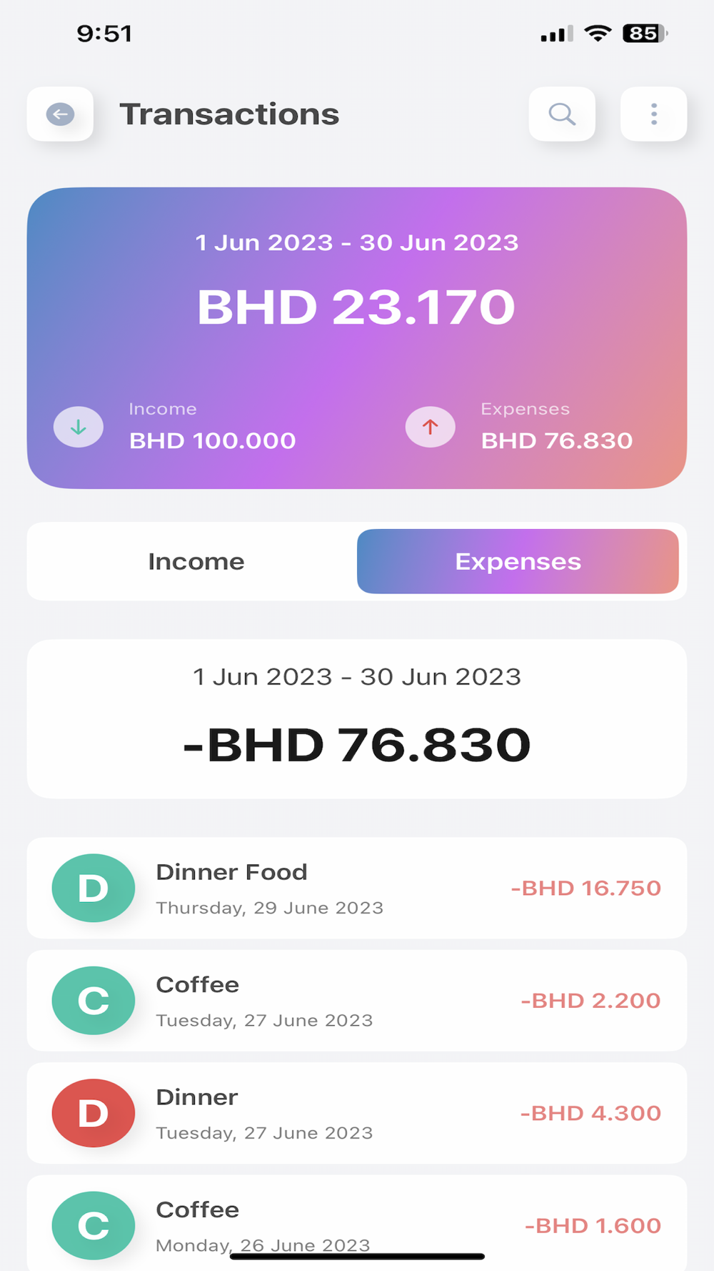 * Budget Goal Achievement: Set budget goals for different categories and monitor your spending to ensure you maintain the set target.
