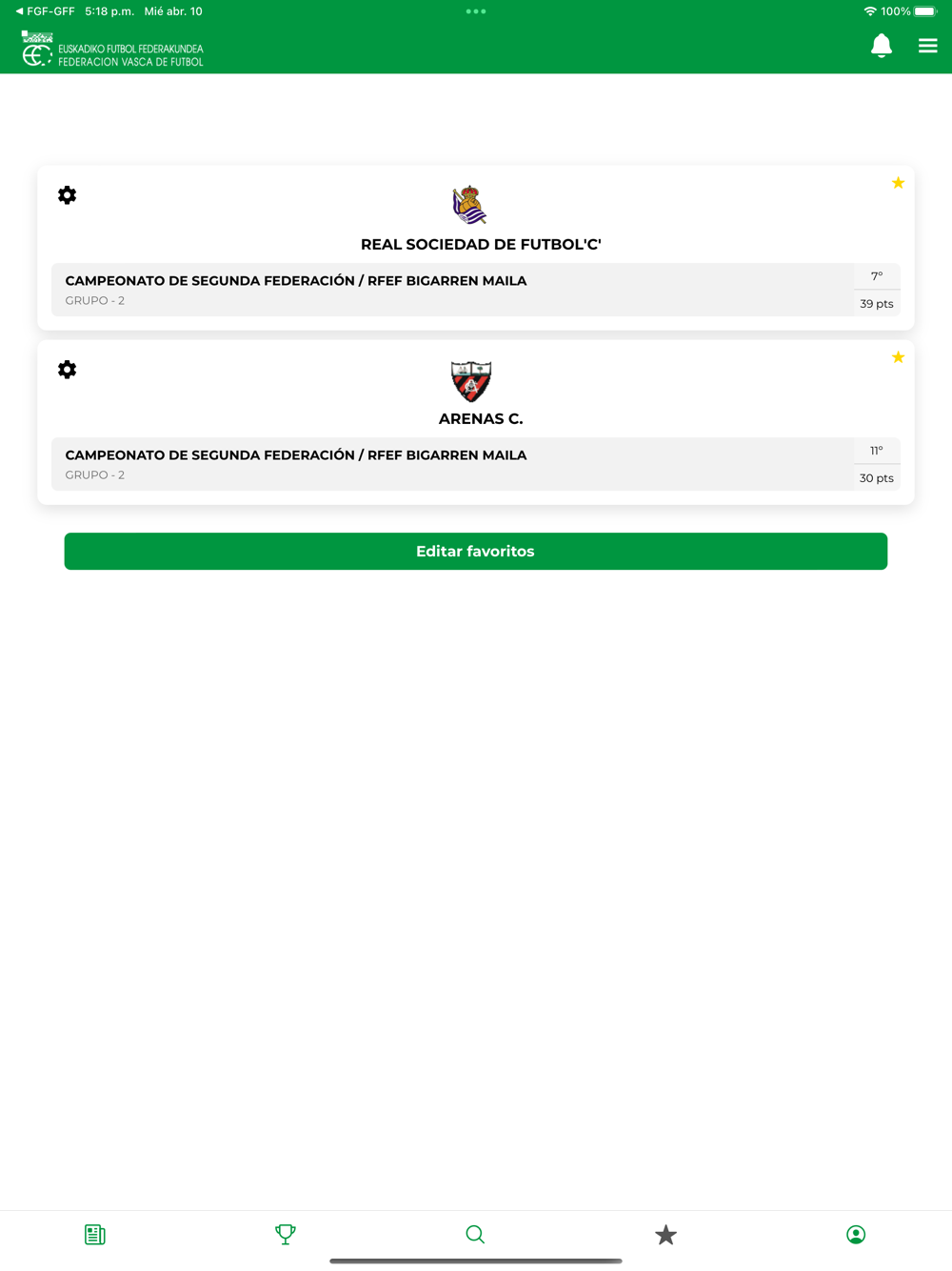 Euskadiko Futbol Federakundearen IOS gailuetarako aplikazio ofiziala. Kontsultatu Federakundearen lehiaketa guztietako ordutegiak, emaitzak, sailkapenak, albisteak...