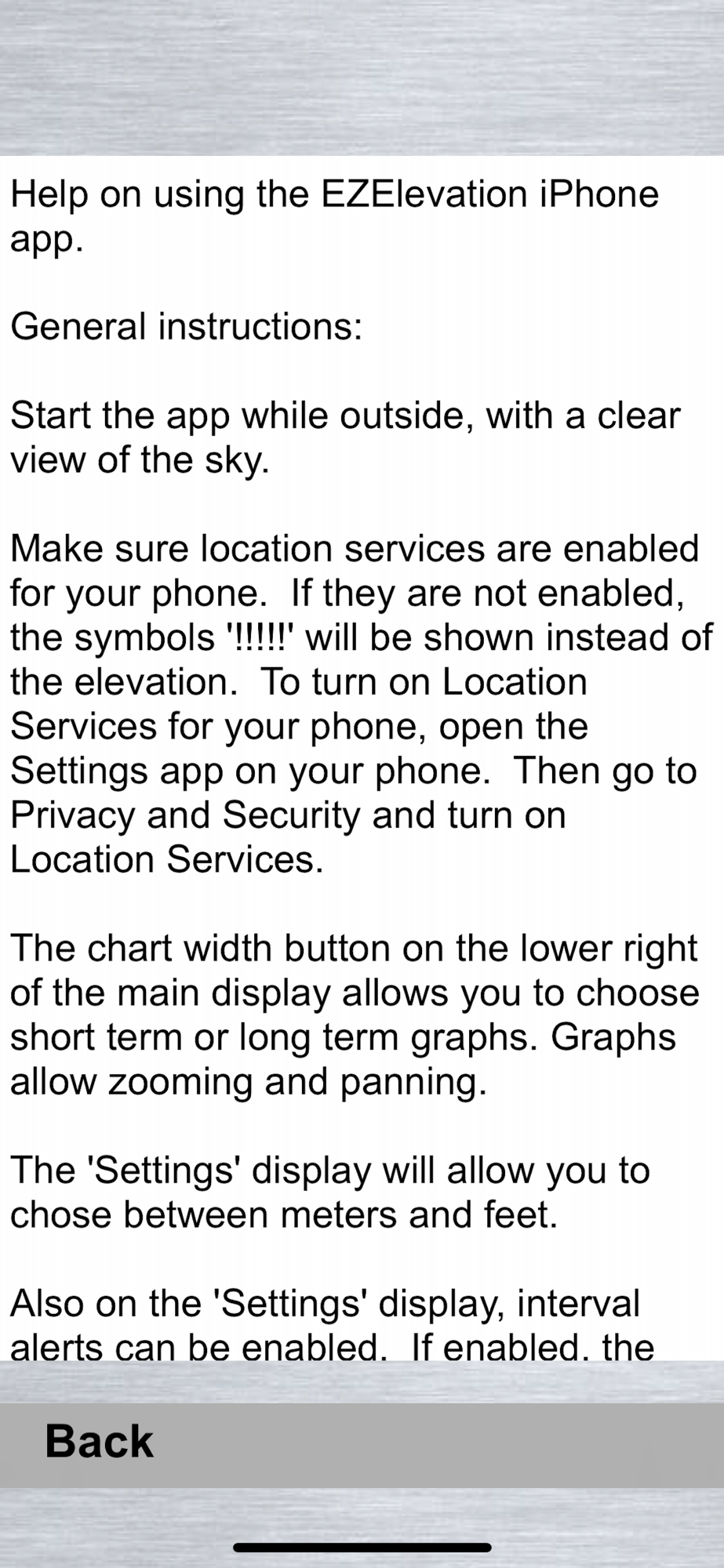 A simple app for showing your current elevation. A graph of your elevations over time is also shown. I wrote this app because my wife always wants to know our elevation when we are road tripping in our van. No ads. No in-app sales.
