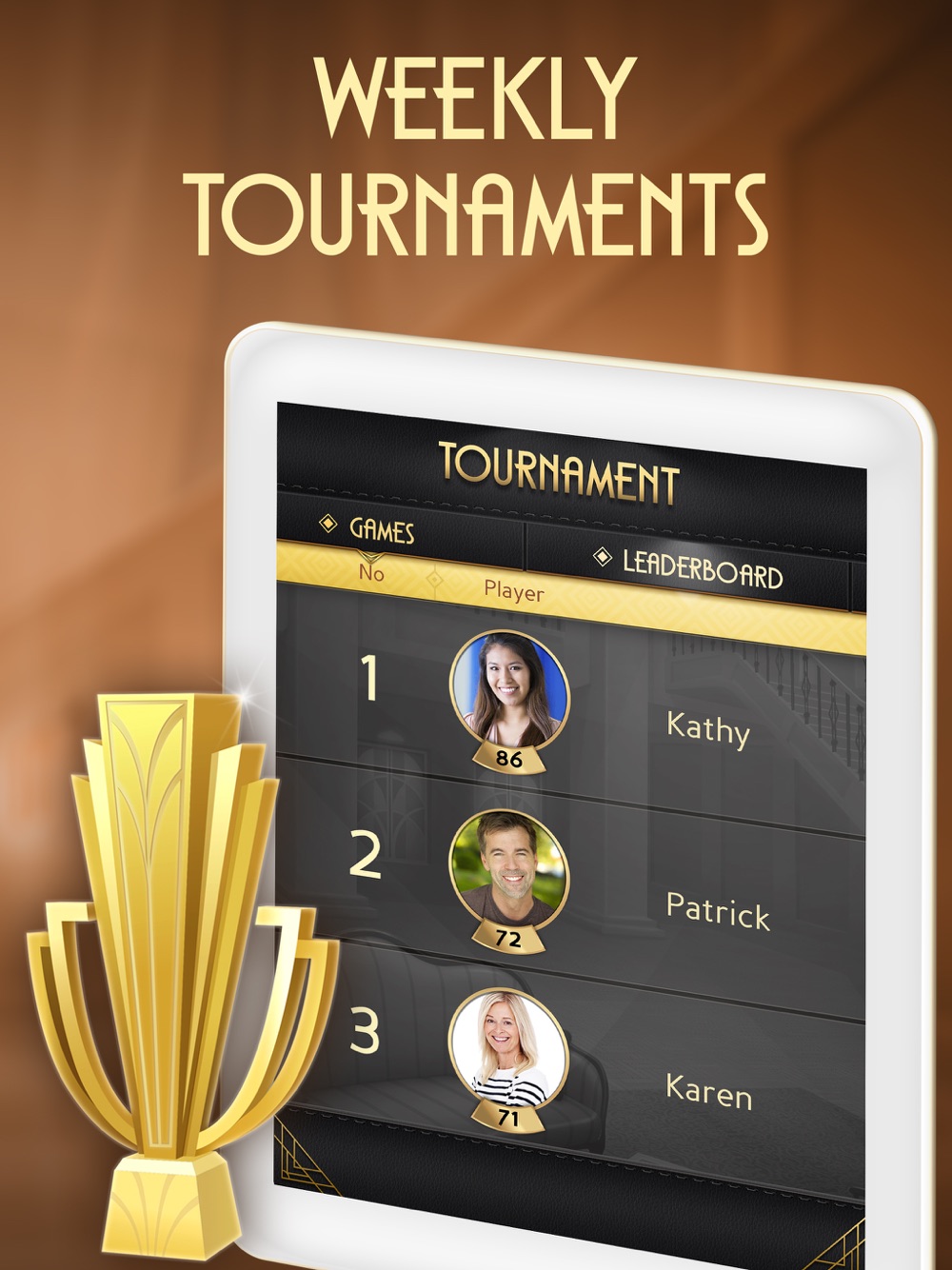 Choose between the multiplayer modes Classic, Quick and Oklahoma Gin and put your skills to the ultimate test in our tournaments and win big!