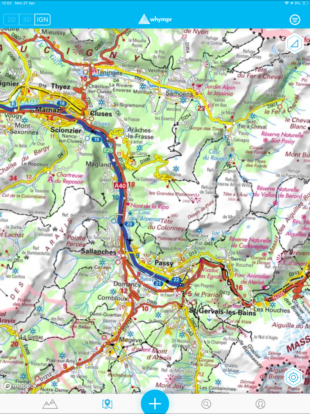 Access a collection of topographic maps, including IGN, SwissTopo, USGS and ten others, including the Whympr outdoor map covering the world. Visualize slope inclinations for thorough preparation.