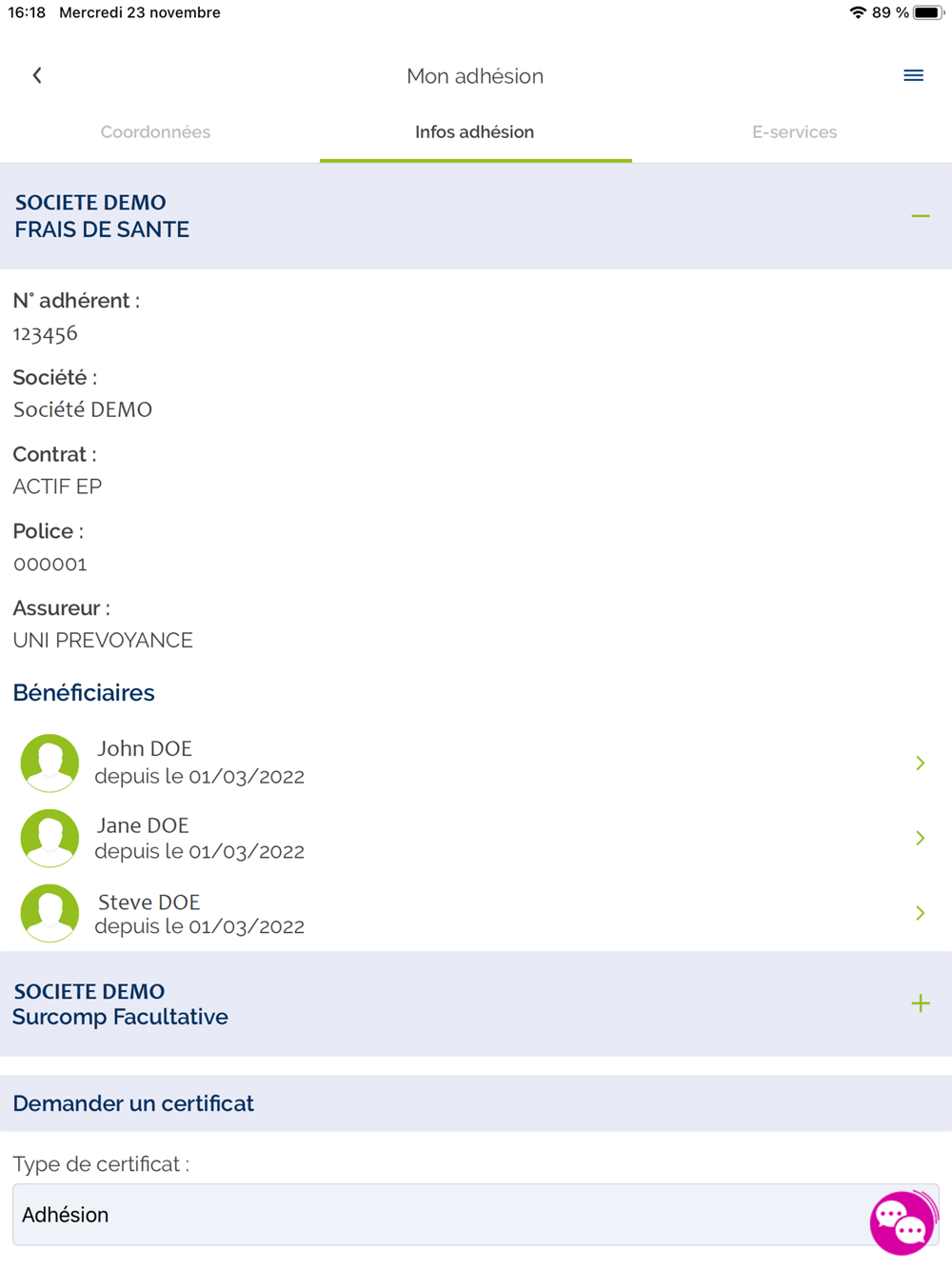 - Télécharger votre carte de Tiers-Payant même hors connexion réseau