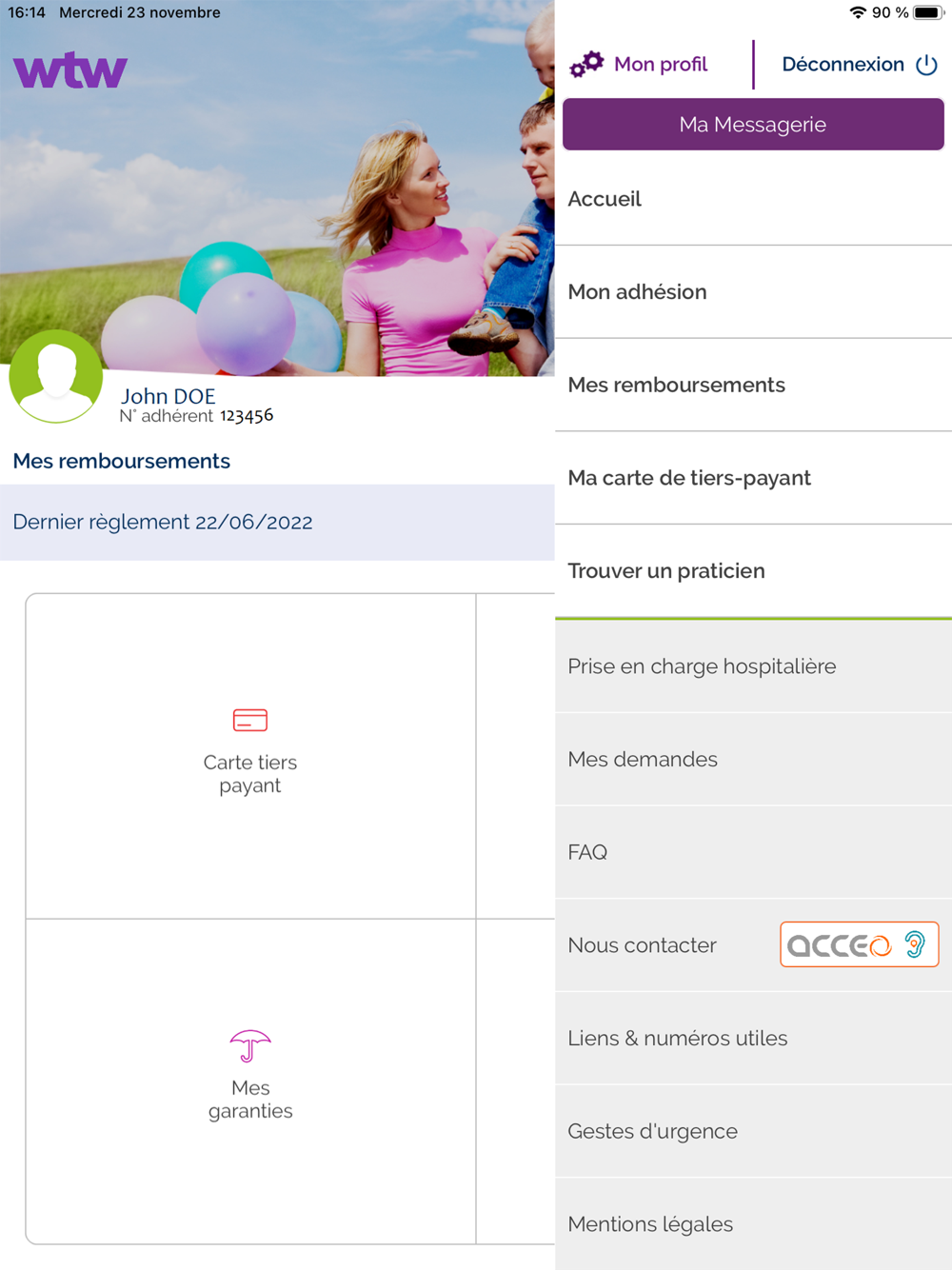 L'application SANTE WTW est mise à disposition des assurés dont la complémentaire santé est gérée par WTW. Pour y accéder, il vous suffit d’utiliser l’email communiqué à WTW. Si vous ne nous avez jamais communiqué votre adresse email, rendez-vous sur le portail www.witiwi.fr pour créer votre compte.