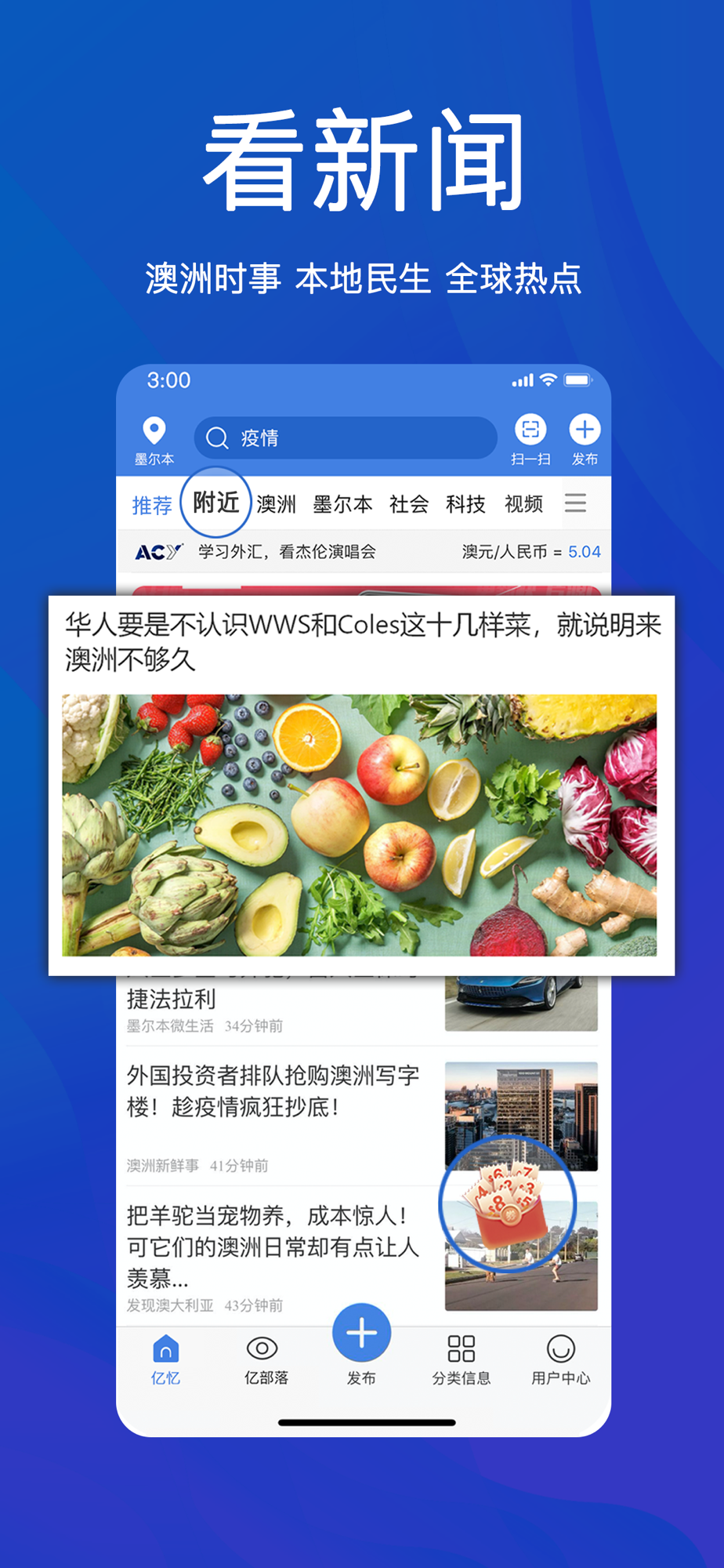有趣的人和事,都在这里了!澳洲互动率最高的中文社区,同城讨论火热话题,吐槽互助,同城交友、婚恋亲子、萌宠时尚、校园旅游、还可以发现并关注感兴趣的人,访问Ta的朋友圈,了解最新的动态。还可以随时随地私信聊天,发送语音和图片。