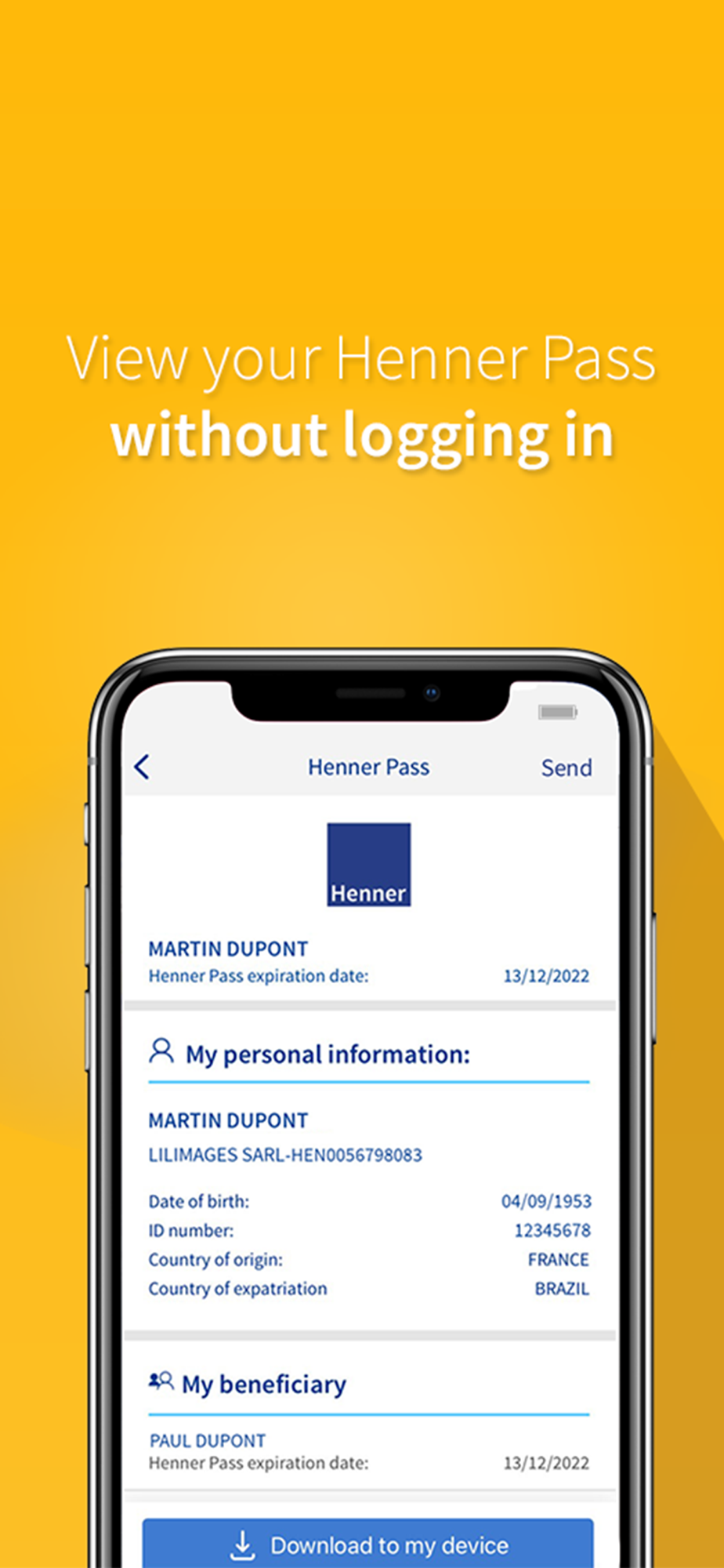 *NEW* only available on the mobile app: The Henner Pass, your new electronic membership card. Show or send by email to your healthcare provider the Henner Pass listing your entitlement and rates to direct settlement, as well as the contact details he may need. Access your Henner Pass offline, so you can have it with you wherever you go.