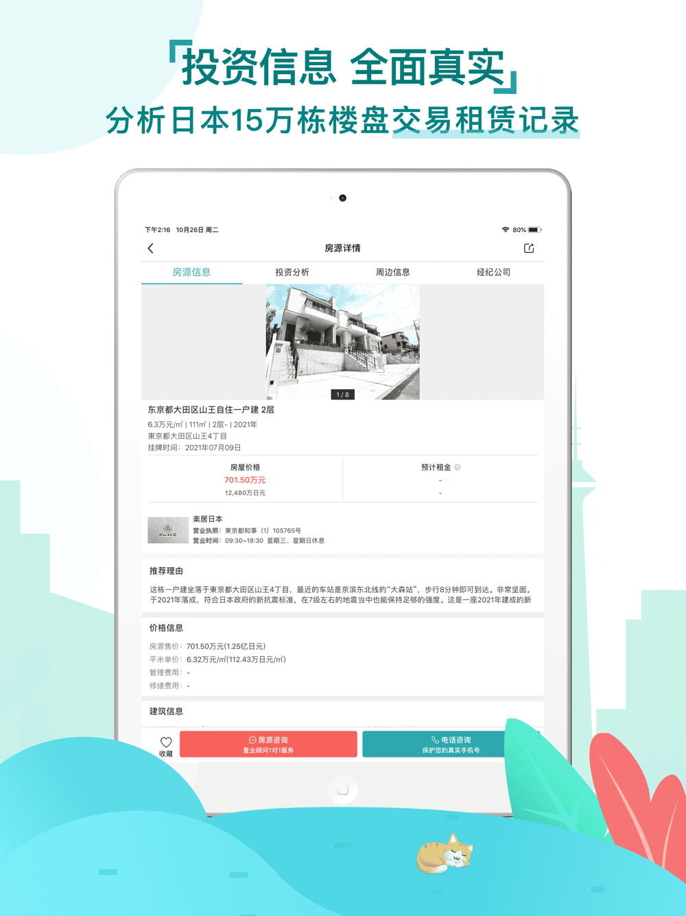 神居秒算隶属于日本上市不动产集团GA Technologies,致力于为海外投资家提供赴日投资、置业、留学、 租房、移居等全流程服务,为您打破语言交流和文化差异的屏障,更方便地探寻理想中的海外家园。 我们拥有专业的日本房产市场分析团队,定期发布专业的投资分析报告,助您做出更高效、更精准的投资决策。