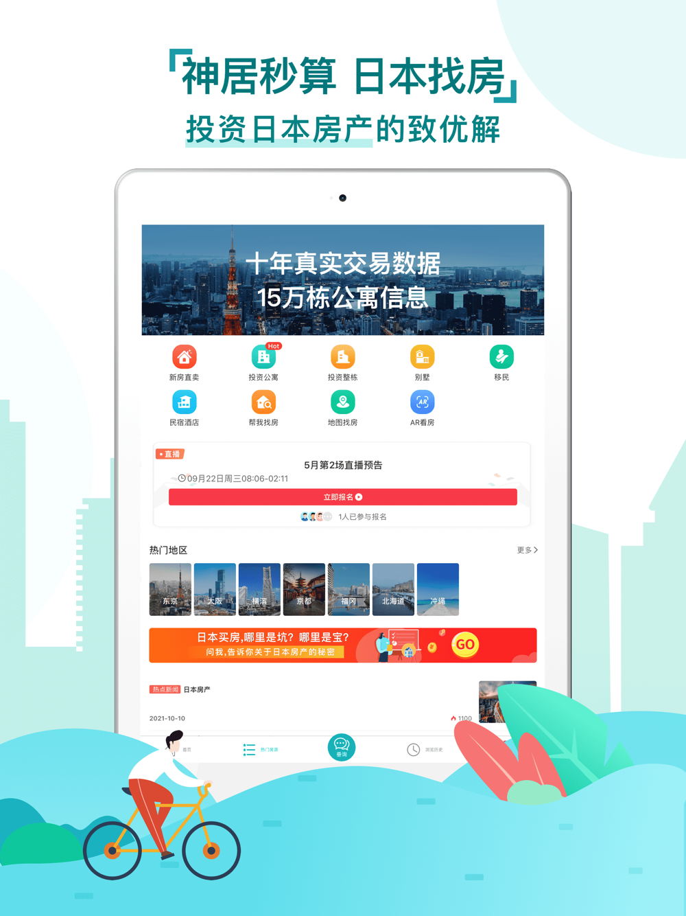 直播预告(新功能):用户点击「直播预告」,查看详情即可预约观看线上直播,了解日本房产投资新知识;