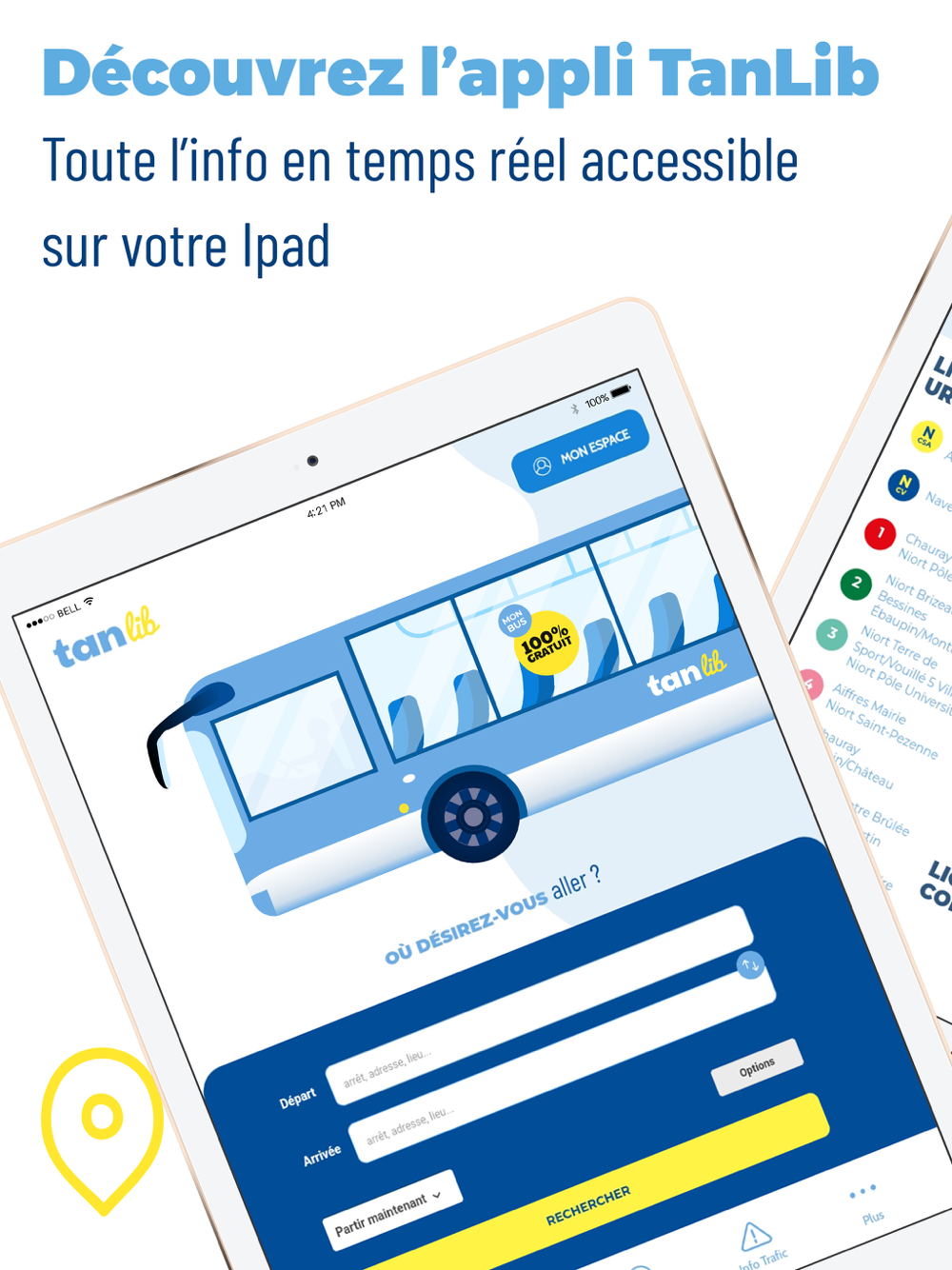 L'application Tanlib vous permet de trouver toutes les informations nécessaires pour vous déplacer simplement et gratuitement à travers les 45 communes de la Communauté de l'Agglomération du Niortais.
