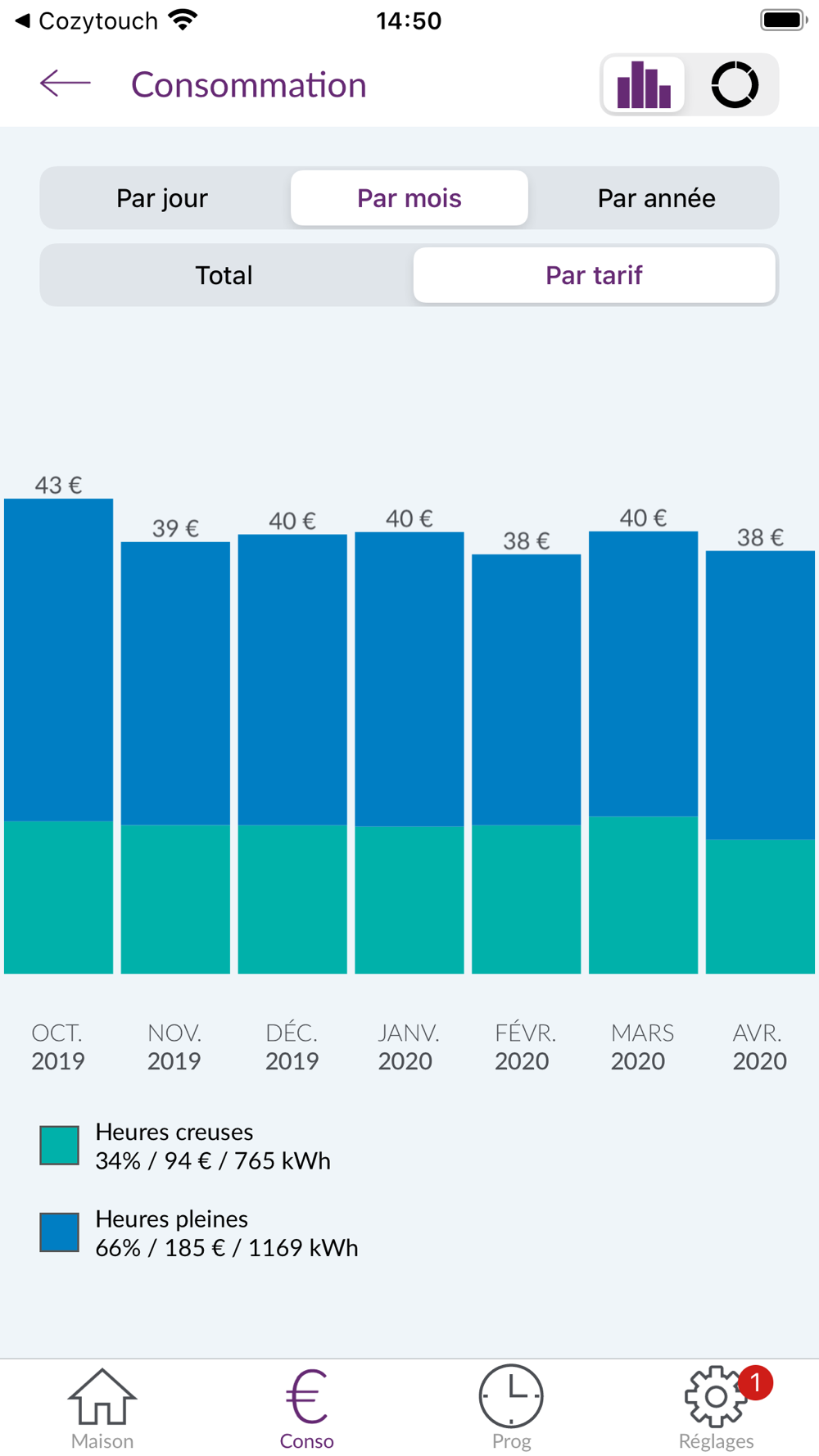 Affichez pièce par pièce la consommation d’électricité de vos produits, à la semaine, au mois ou à l’année afin de réaliser des économies d’énergie.