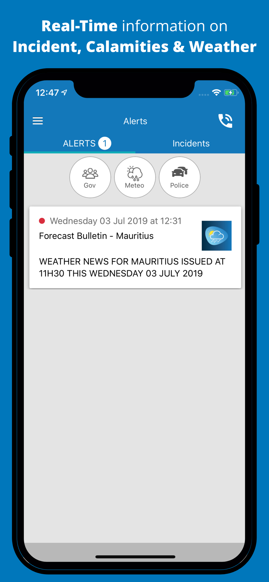 Get updated and real-time information on major incidents, calamities and weather information in Mauritius.