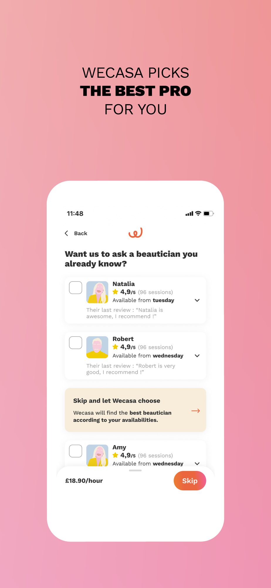 Wecasa customers then rate the partner professionals after each session, which ensures high quality services.