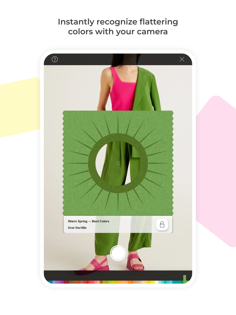 - Smart Color Picker: Instantly find colors that enhance your look. Point your camera at clothing or select a photo from your gallery.