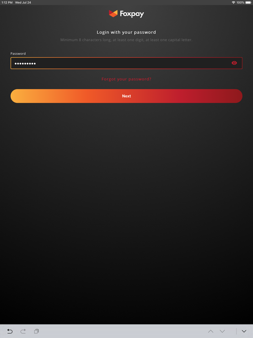 Foxpay užtikrina saugų prisijungimą unikaliu 5 skaitmenų kodu arba piršto antspaudu.
