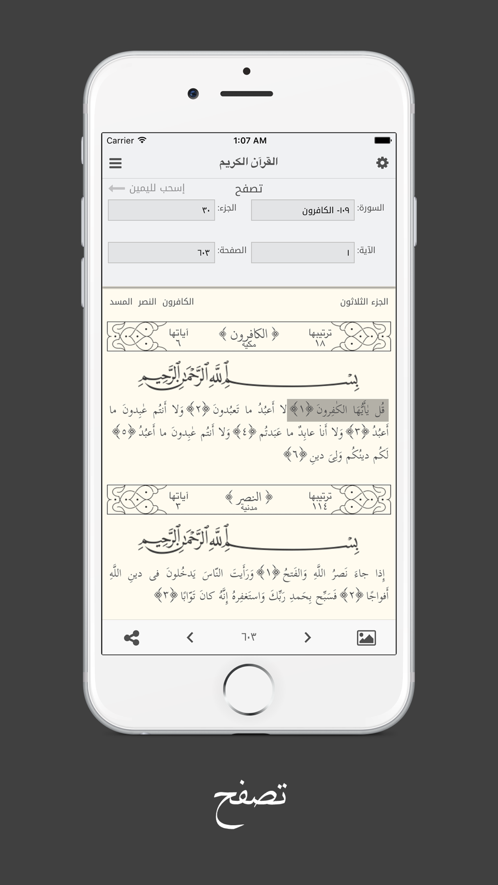 - إمكانية التنقل بين السور والآيات والأجزاء والصفحات بسرعة وسهولة.