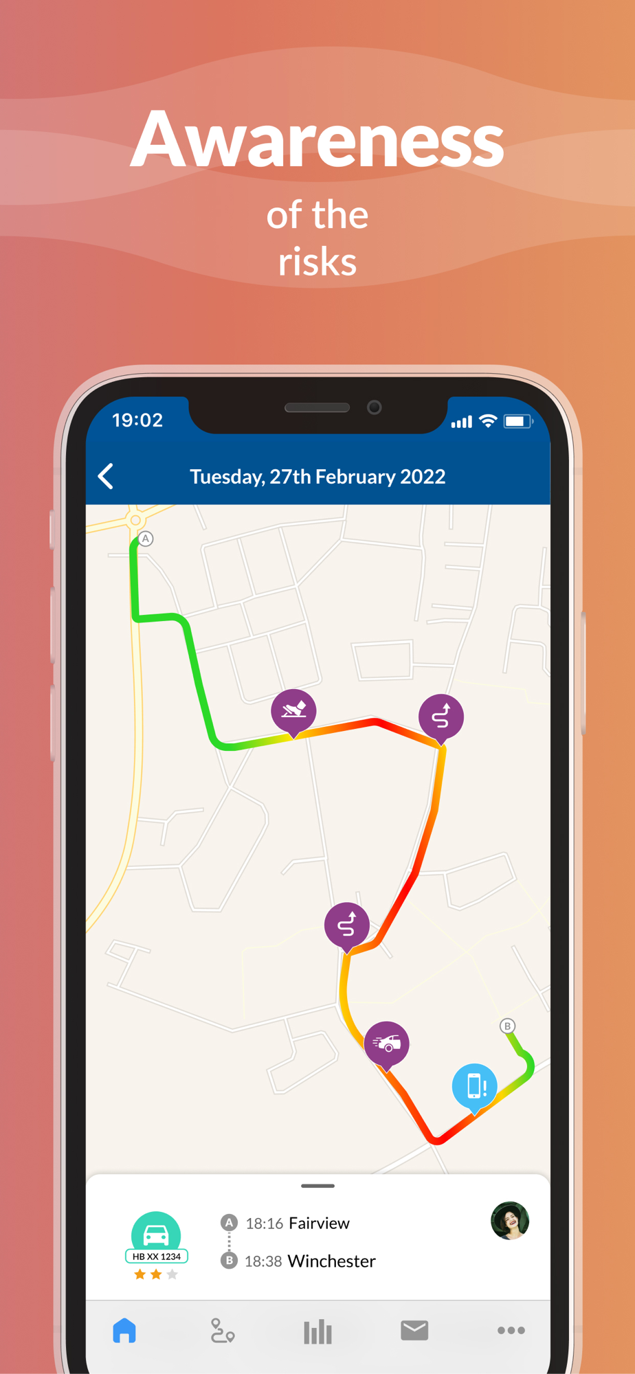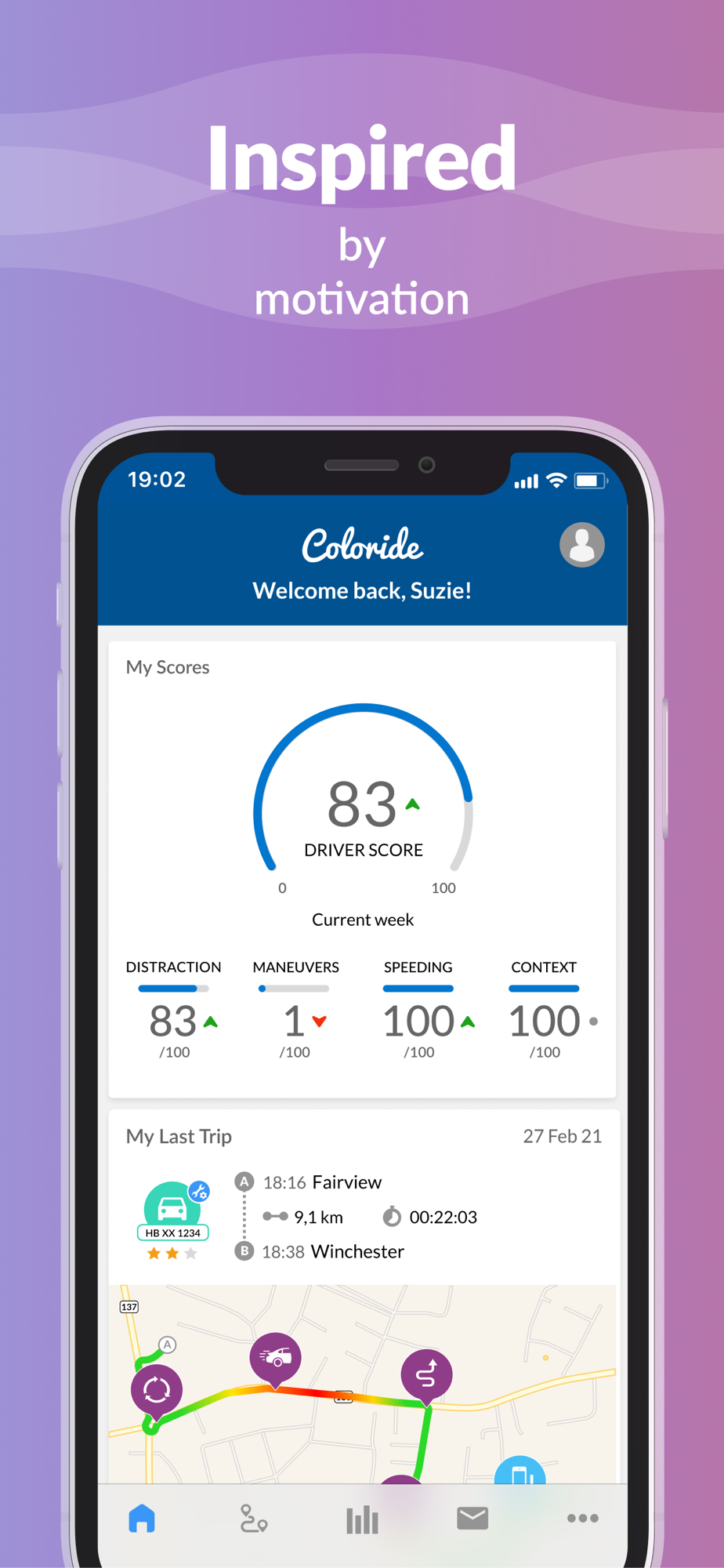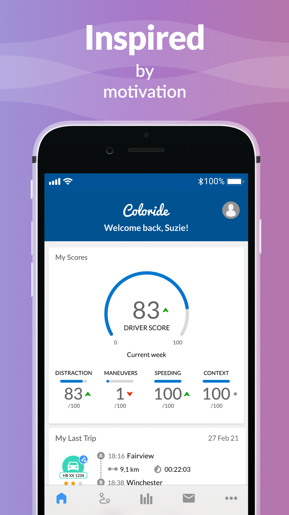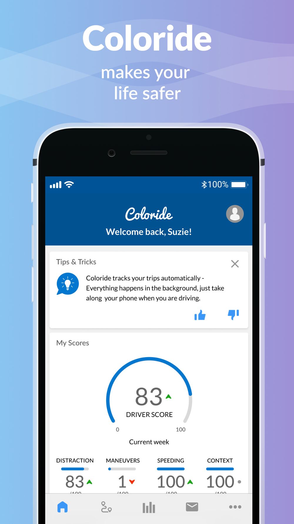 Coloride automatically detects your mode of transport while on the move and displays events like phone distraction, risky maneuvers and speeding after the journeys when you have been driving.