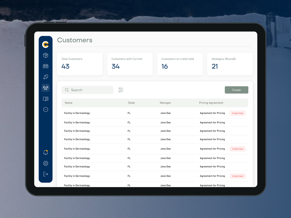 An application made with the field staff at Kerecis in mind. It offers a variety of features, such as real time Analytics, Orders, Benefit Investigations, Inventory section and Marketing Material.