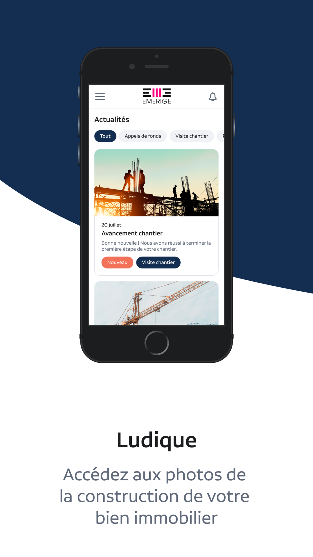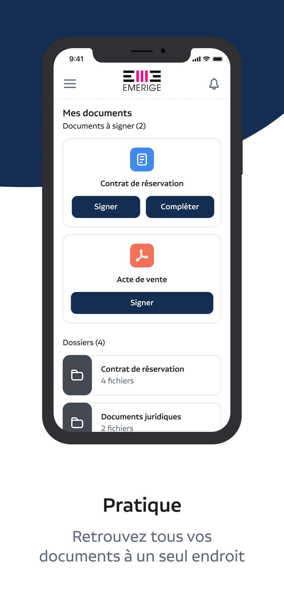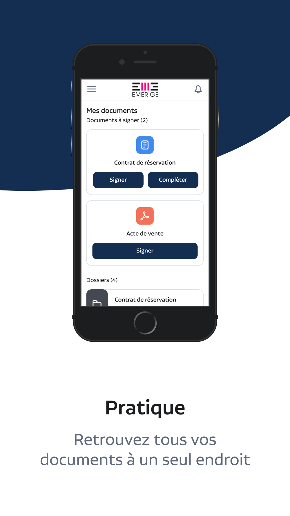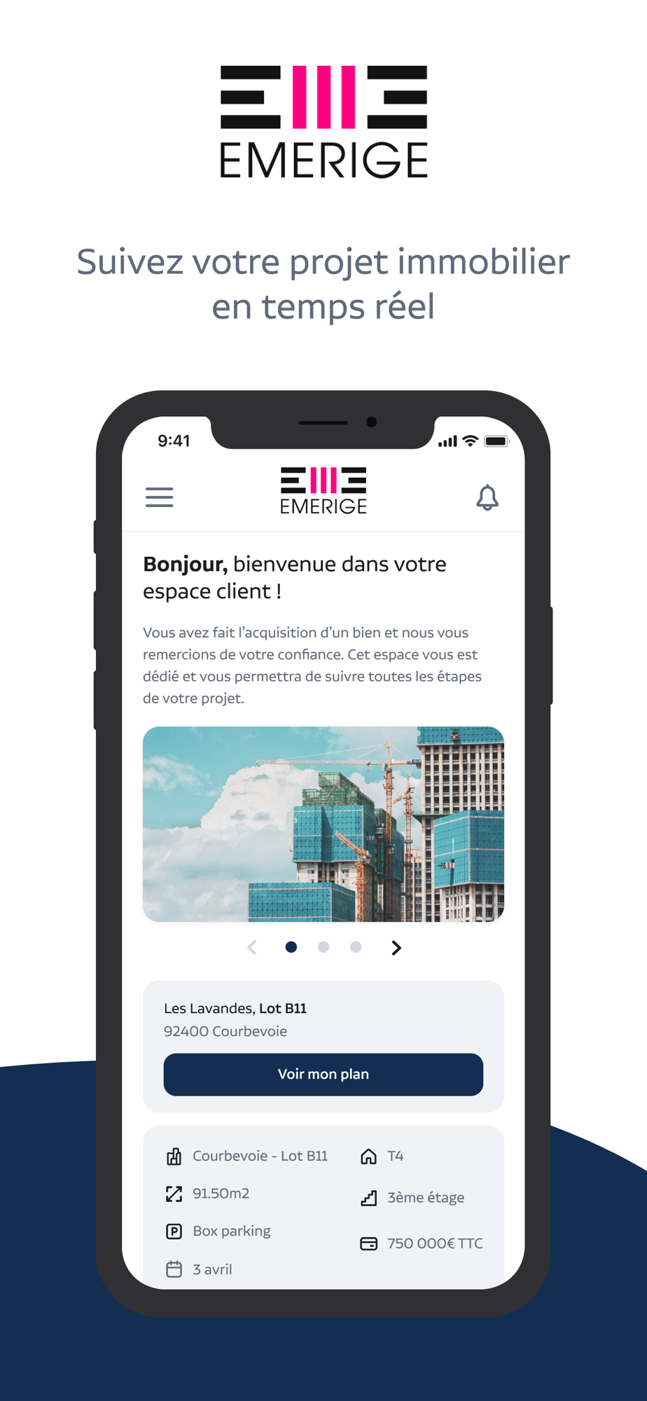 Avec My Emerige, vivez une expérience client simple et personnalisée ! Suite à la signature de votre contrat de réservation, accédez à votre espace client et retrouvez l’ensemble de vos documents personnels et les caractéristiques de votre projet. Complétez votre dossier, suivez les étapes en cours et celles à venir, consultez en image l’actualité de votre résidence à distance, échangez facilement avec vos interlocuteurs Emerige. De la réservation à la livraison de votre logement, Emerige vous accompagne à chaque étape de votre achat !