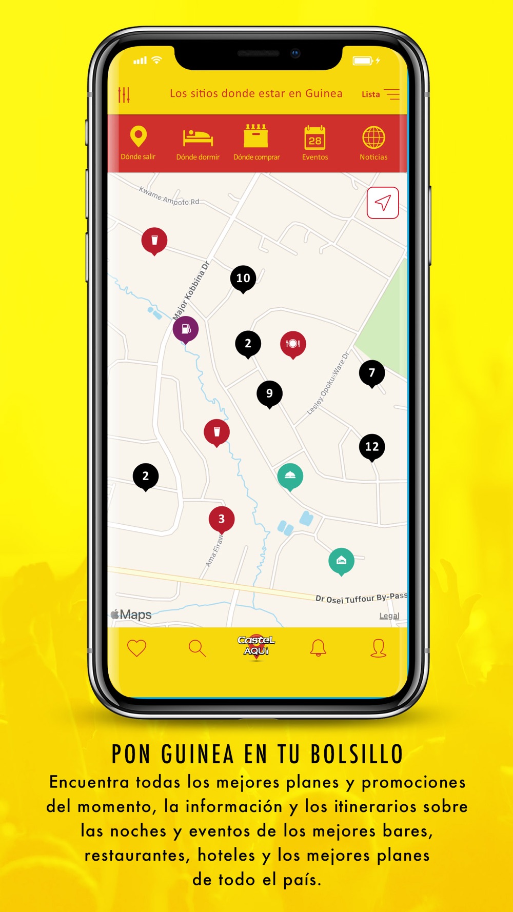 Navega por Guinea Ecuatorial de manera facil y rapida con Castel Aquí. Descubre lugares y muévete como si fueras de la zona.
