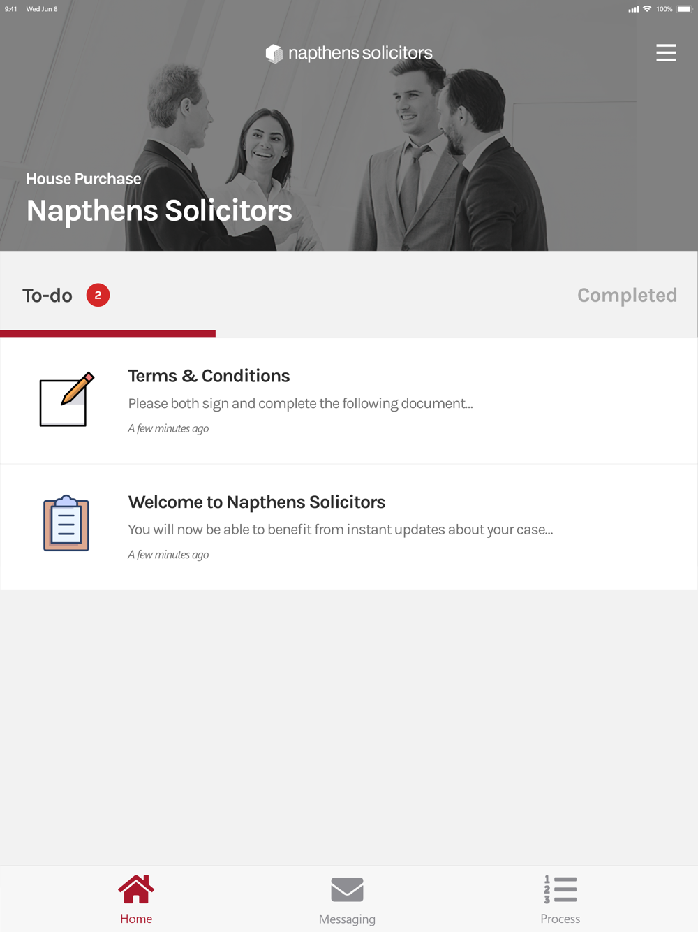 The Napthens app allows us to communicate with you quickly and enables us to provide a smooth and transparent service. As well as providing you with messages and notifications, we will also be able to send documents to your smart device and you will also be able to return information to us through the app, saving you time.