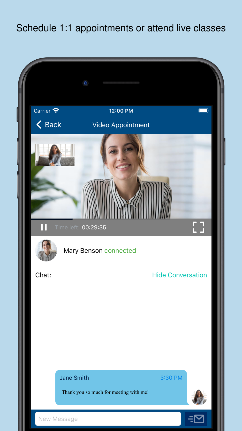On the app, you can schedule and access live appointments with wellness specialists, track your progress, access customized nutrition meal plans, watch on-demand videos and live fitness classes, attend support groups, track progress, and so much more. All these features can be accessed on-the-go or in the convenience of your home. Virtual, live consultations and classes are available seven days a week.