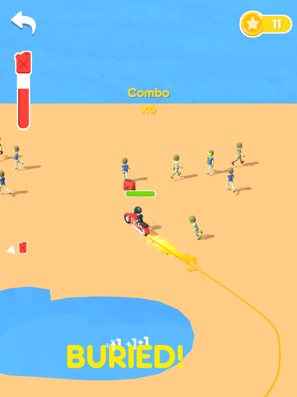 Ride around and burn the ground! There are zombies chasing you! Send them back to hell!