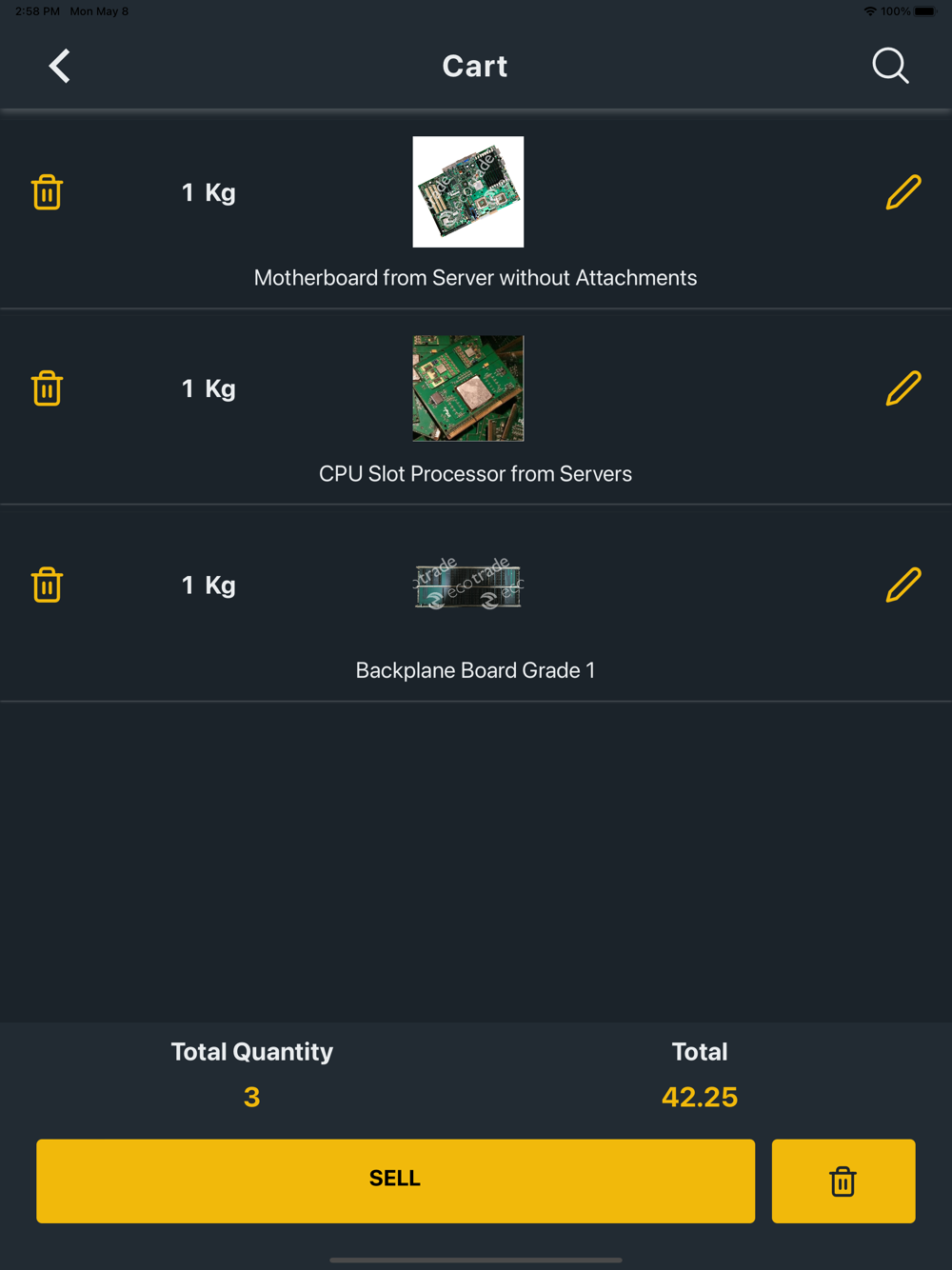 An online catalogue with photos and estimated prices of electronic scrap, our app offers a convenient way to check prices to ensure sellers receive a fair price for their valuable e-waste. Our app was specifically designed for e-scrap generators and traders as most people are unaware of the value of e-scrap. Also Waste Electrical and Electronic Equipment (WEEE) requires proper disposal and management and our app is the solution to this problem. It provides an easy-to-use platform that not only helps you get paid fairly but also incentives the proper separation, disposal, and management of e-waste from other types of waste.