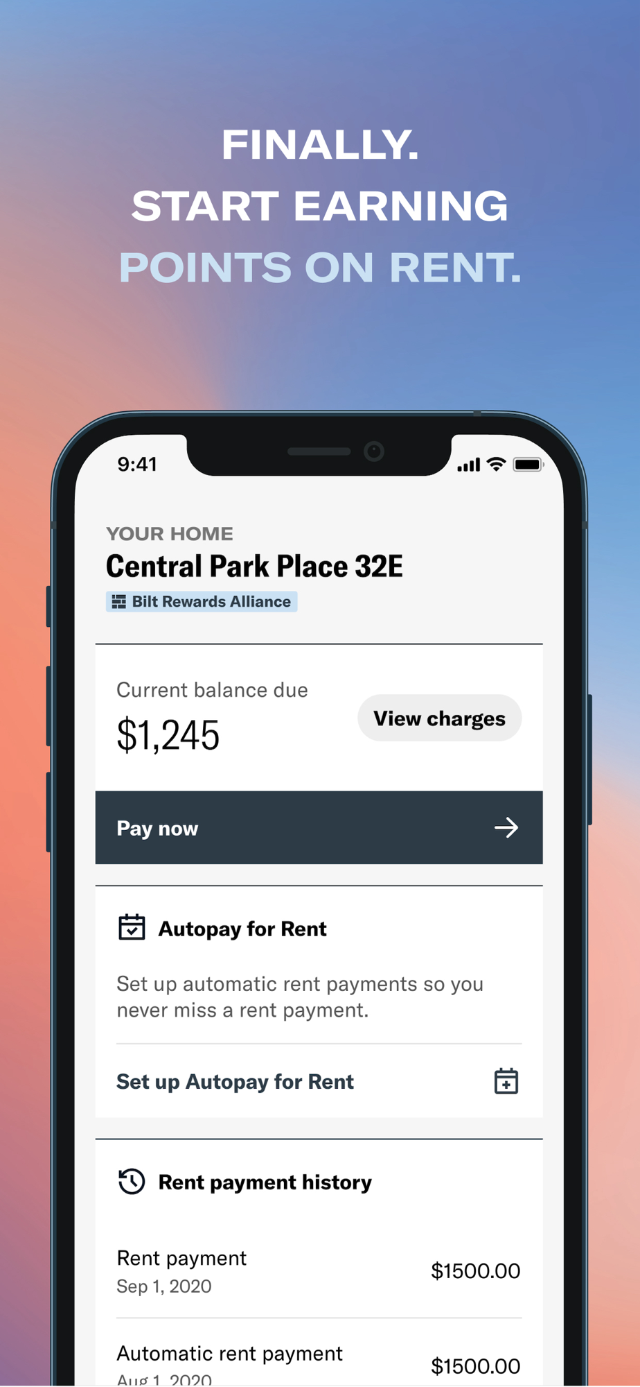 Use the Bilt Rewards app to pay your rent, earn points on each rent payment, track your spend on the Bilt Mastercard, and view your status in the Bilt Rewards program, and redeem rewards.