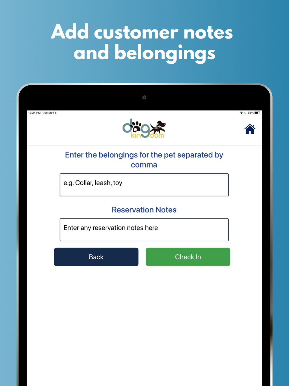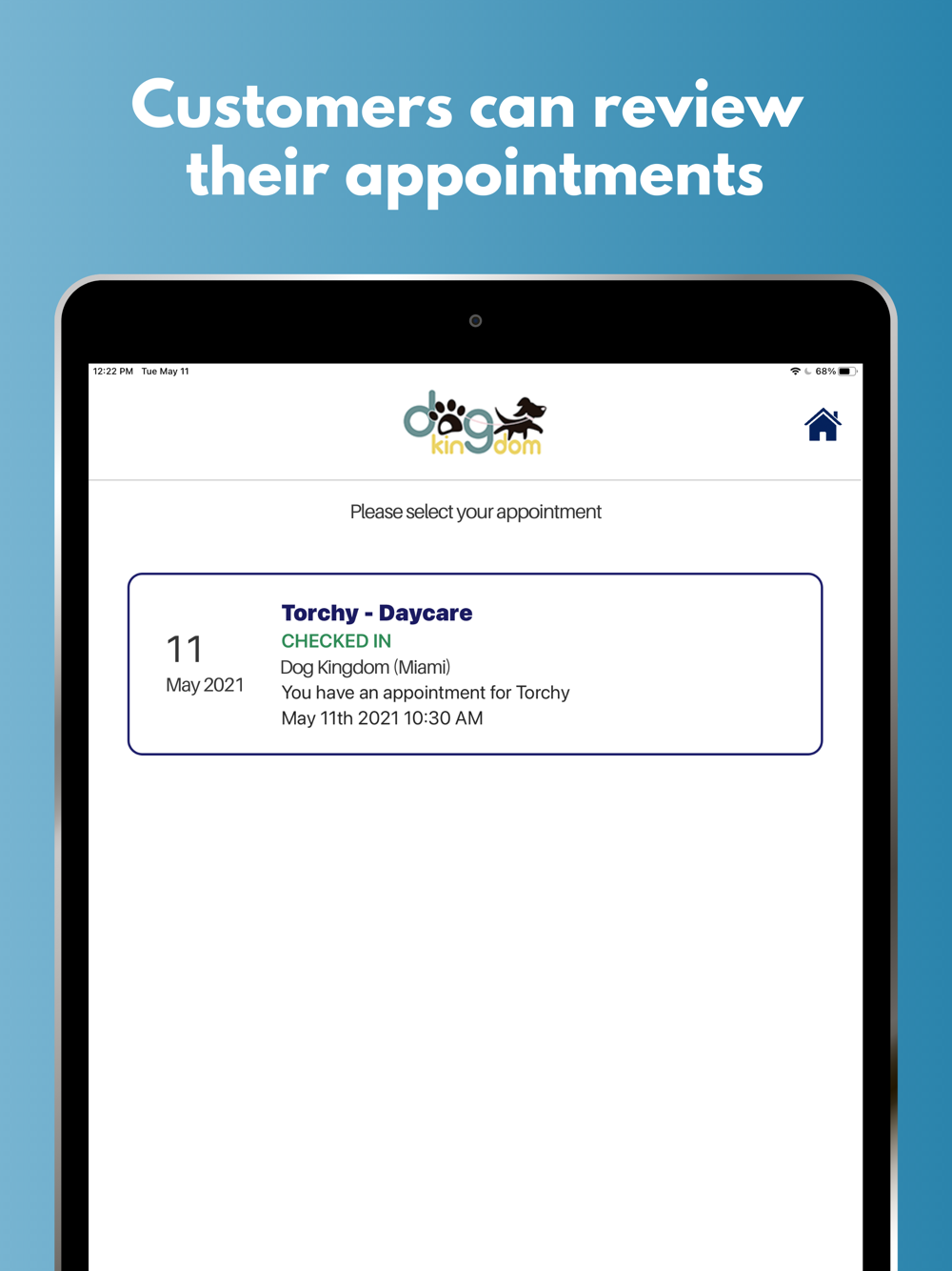 Customers can easily check-in to their appointments, which will all sync up to your RunLoyal Staff Portal. They can review their appointment details, add pet notes, and sign and pay for their visit all during their easy check-in and check-out process.