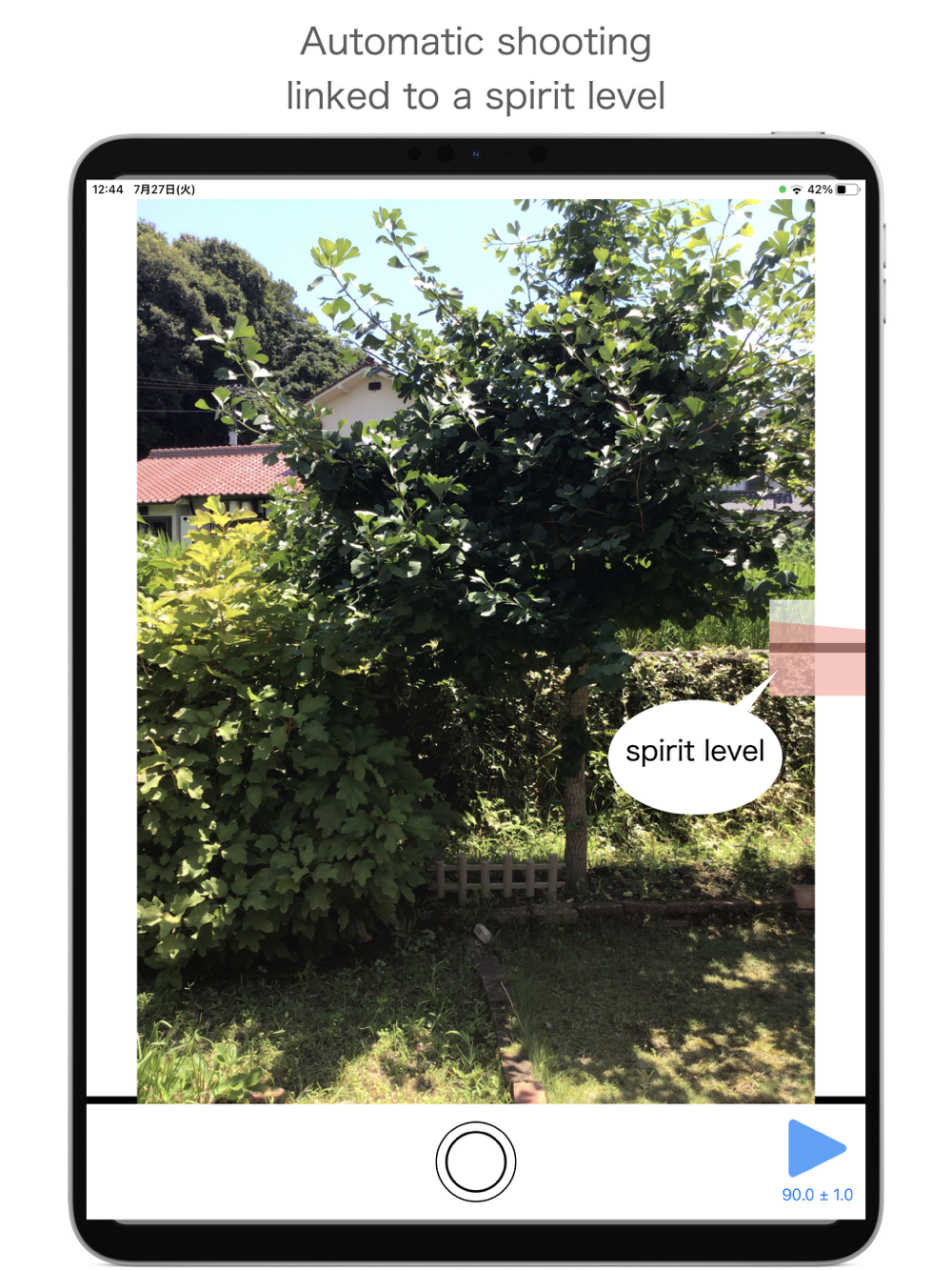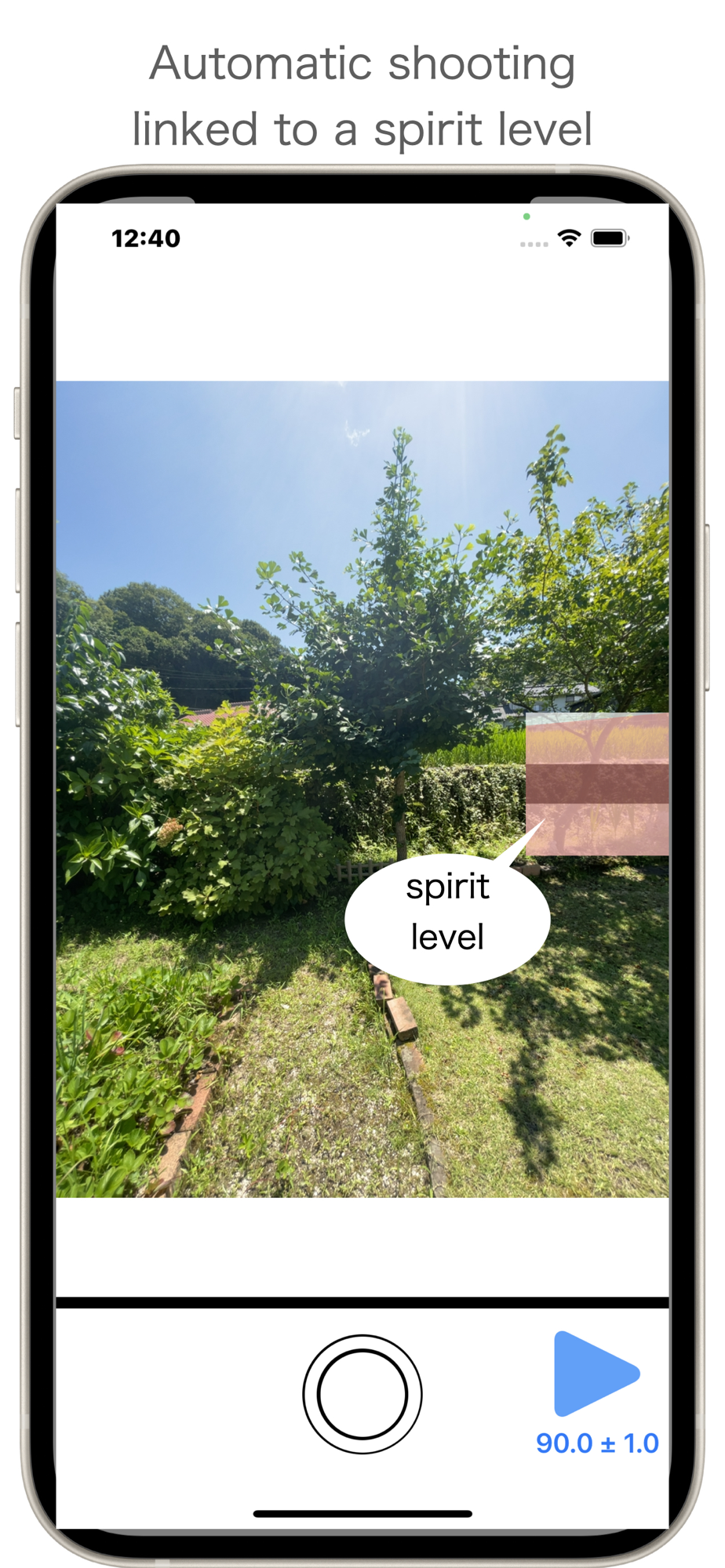 Adjust the position of the smartphone with the level displayed on the screen