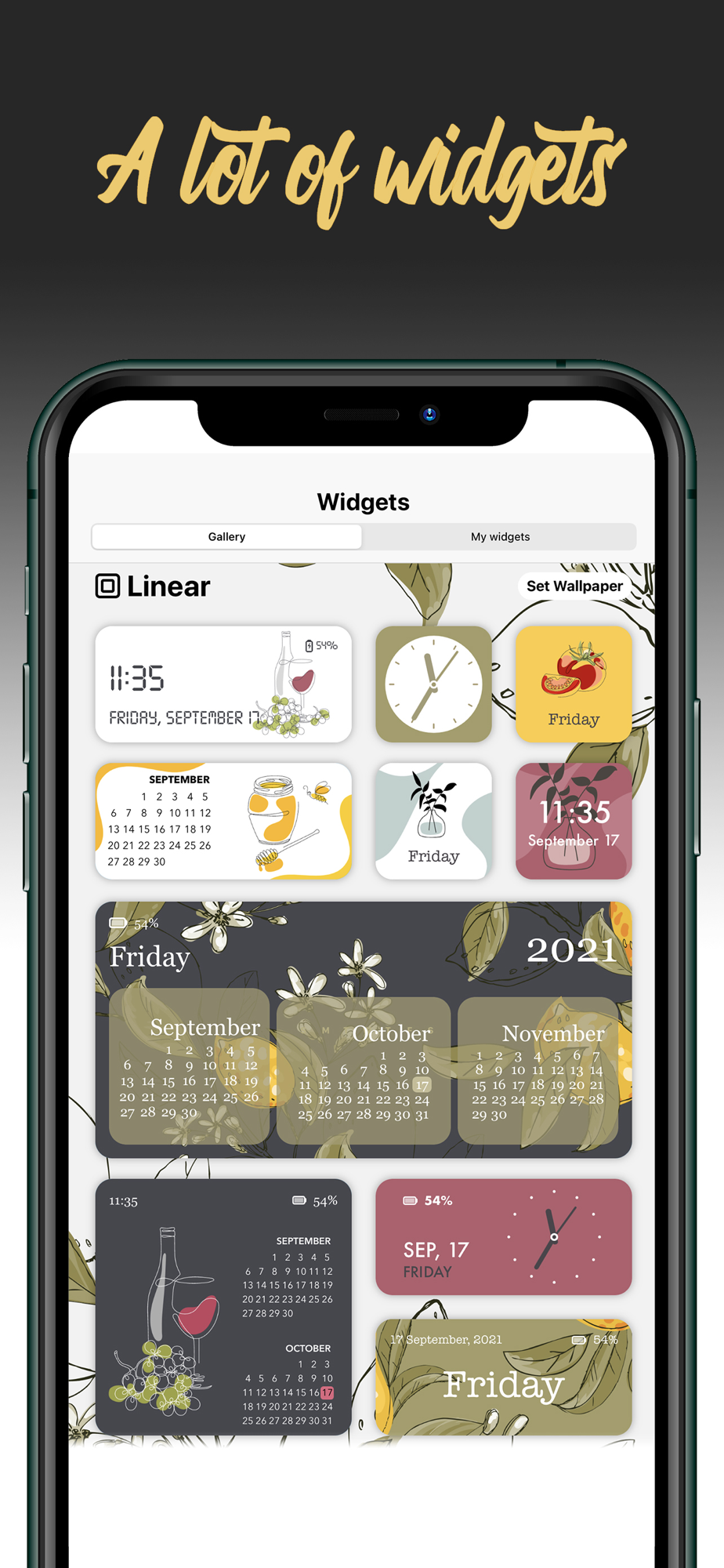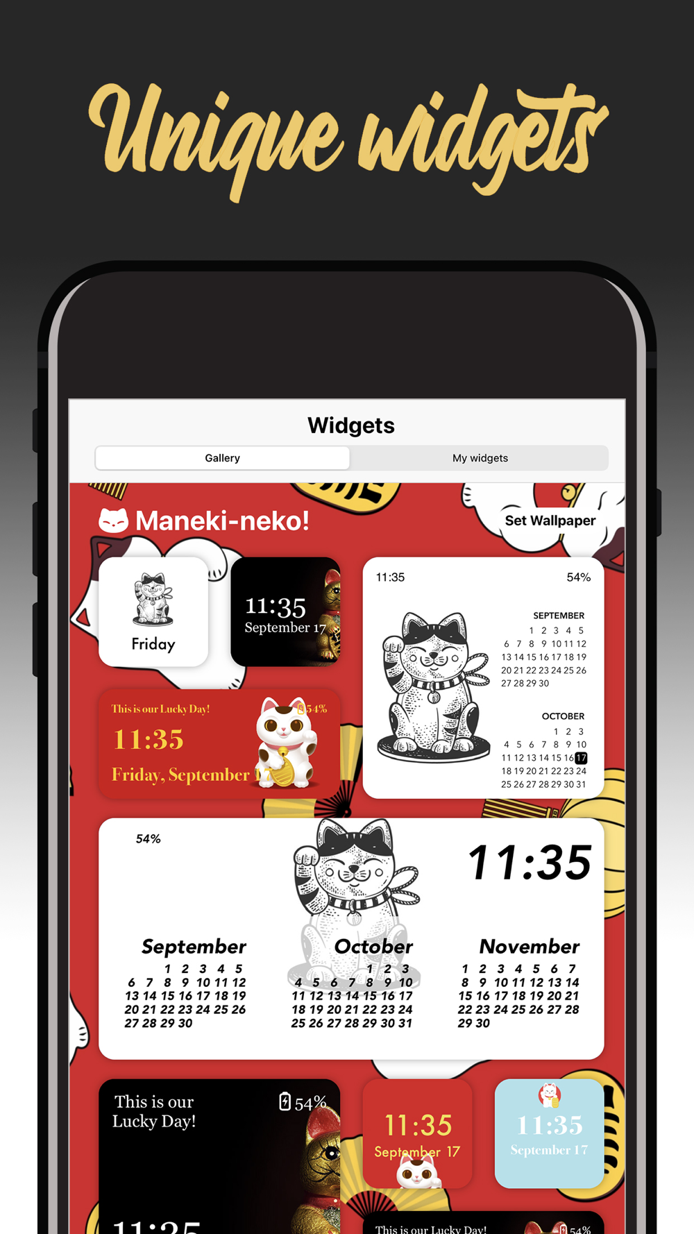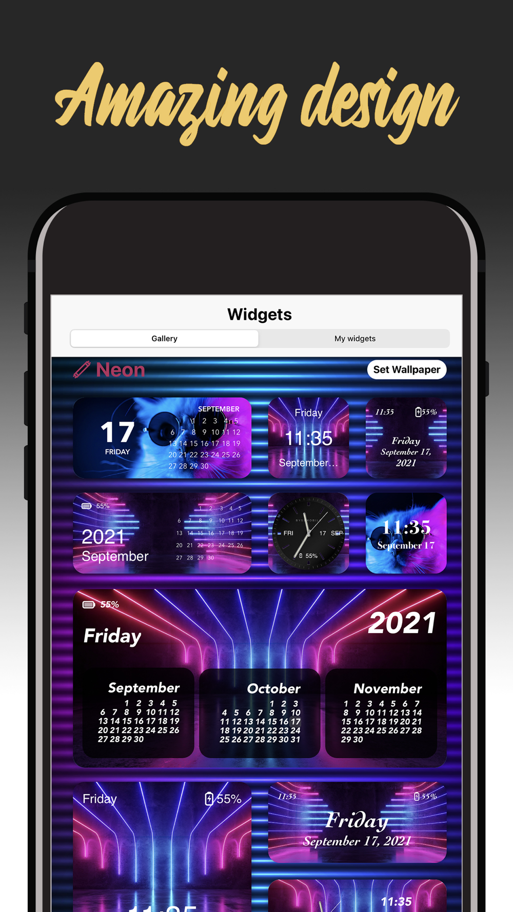 Widgets in our app are not only customizable in order to create any look required. What sets our app apart from the rest, is widget builder with which you can build your own widget looks choosing: