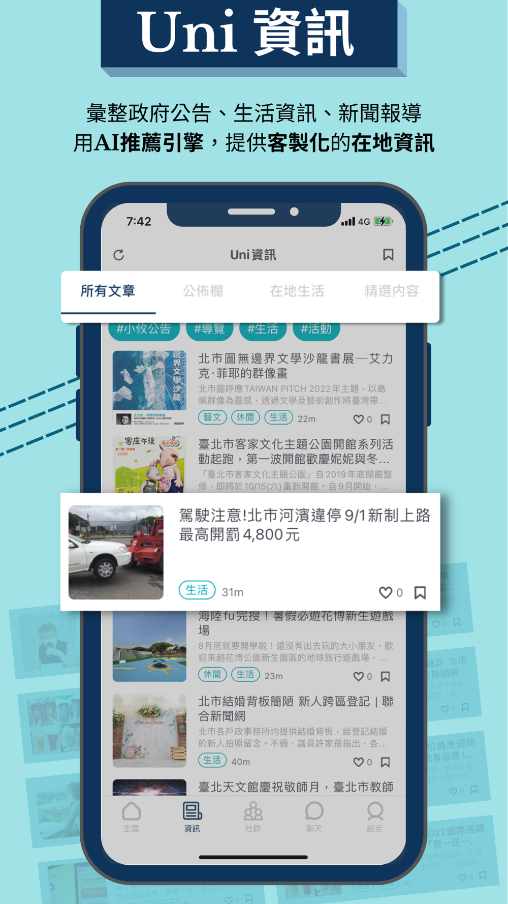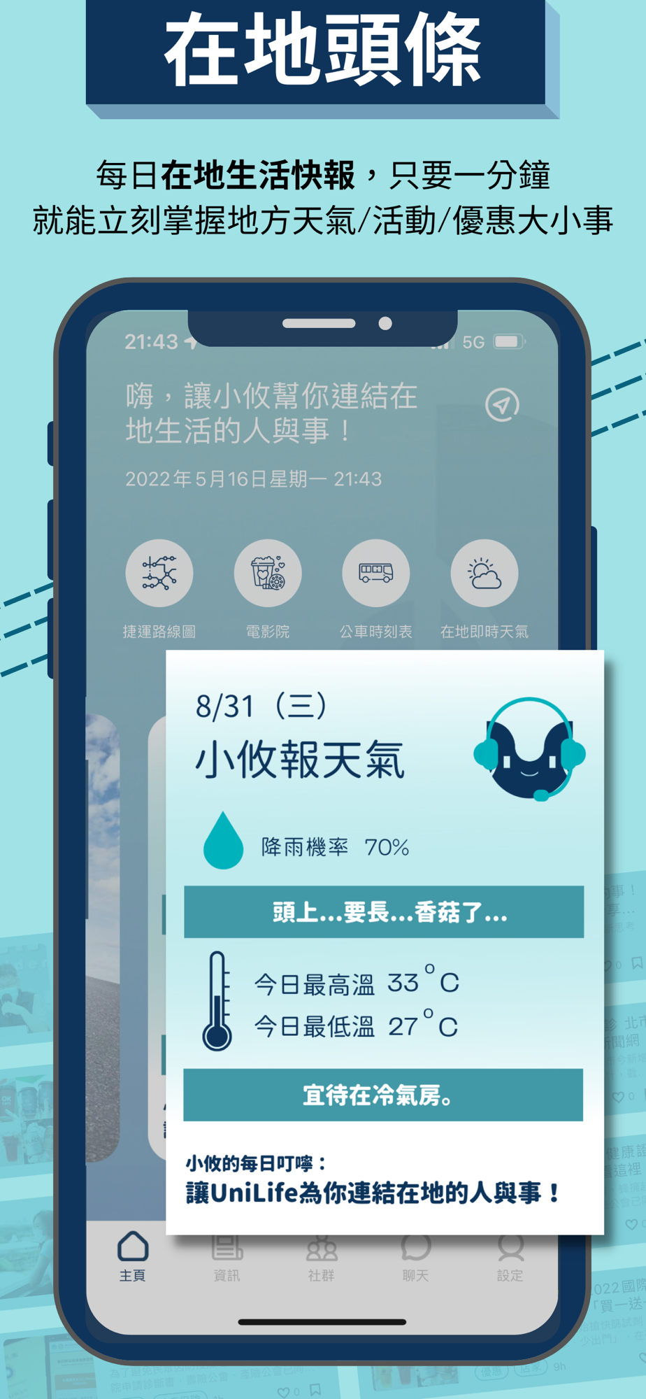 每天一則在地生活快報,只需要不到一分鐘,讓你立刻掌握地方天氣/活動/優惠等實用資訊!