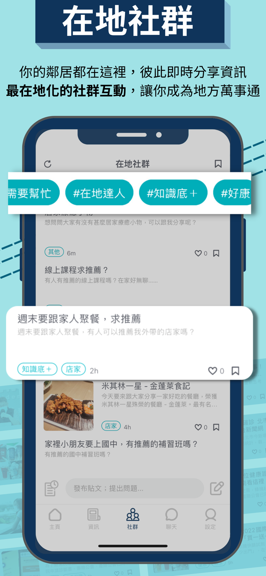 你的鄰居都在這裡!彼此即時分享資訊,形成最在地化的社群互動,讓你成為地方萬事通!
