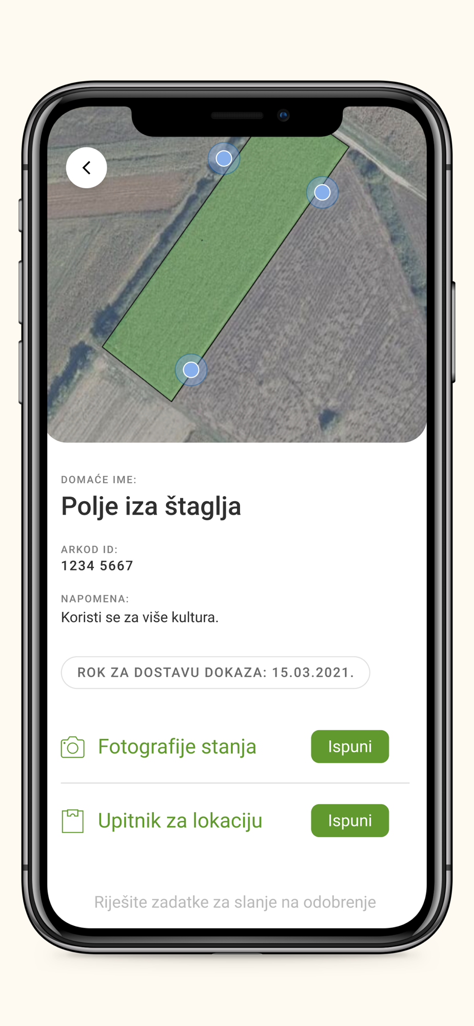 Mobilna aplikacija služi korisnicima za dokazivanje poljoprivredne aktivnosti na Arkod parcelama na zahtjev Agencije za plaćanja u poljoprivredi, ribarstvu i ruralnom razvoju. Potrebna je autentifikacija korisnika.