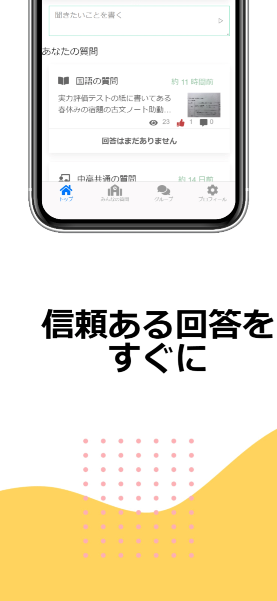 家でも休日でもわからないことをアプリで共有し、みんなで教え合う環境をどの学校でも作ることができます。
