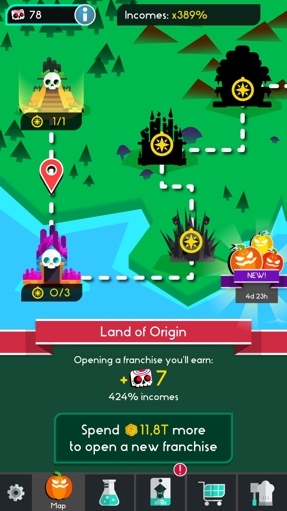 Start with a small business in the dead kingdom, then open more franchises all over the underworld and improve them to earn more and more profit stand earnings! Use your business techniques in this clicker games!