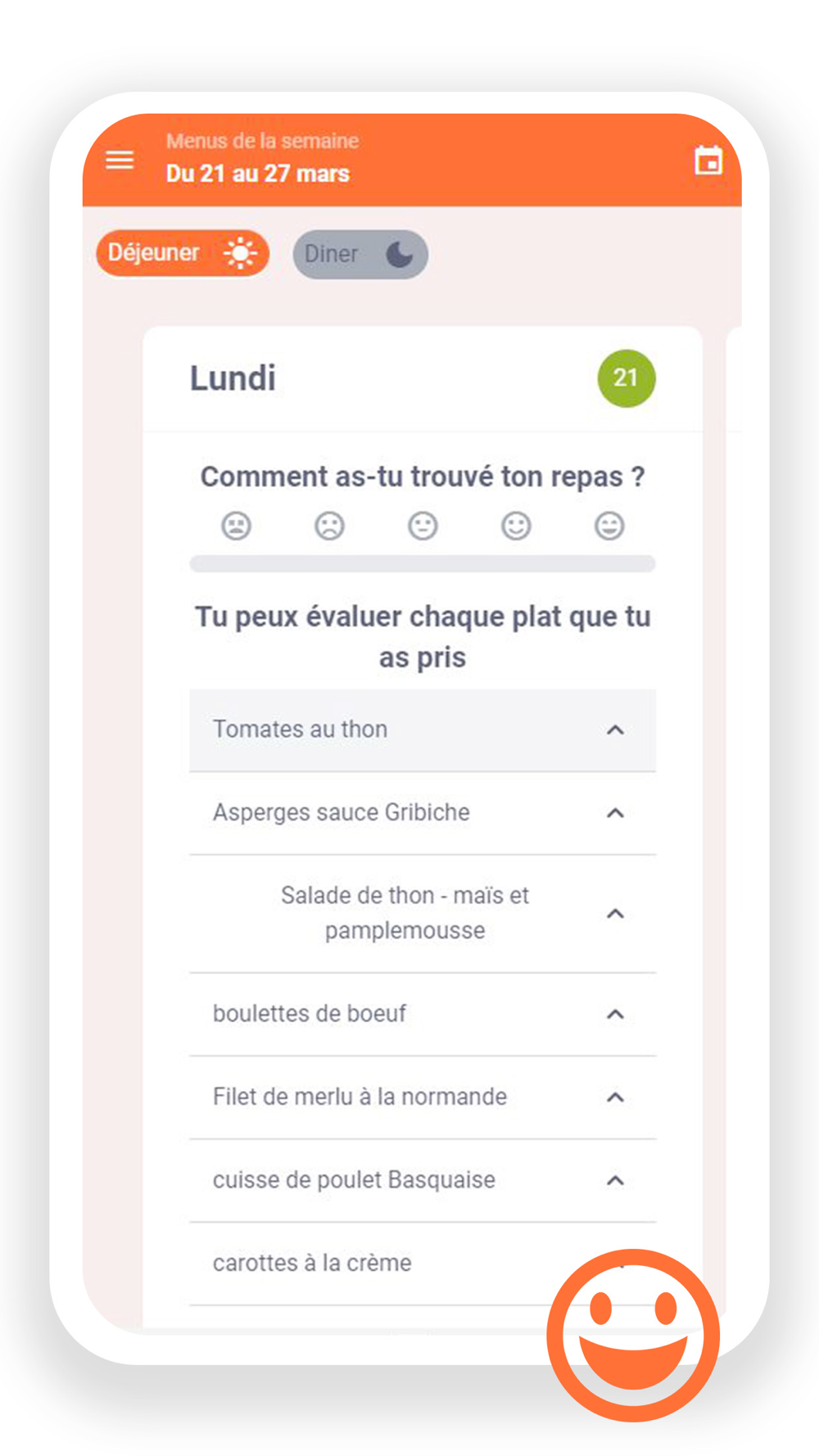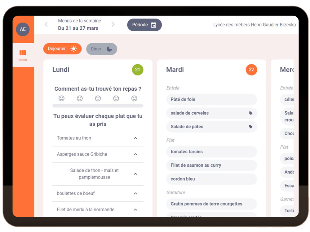 Lapplication BL.repas est une solution qui vous permet de consulter les repas servis la cantine. Vous pouvez accder au dtail des ingrdients composant les plats, leur origine (producteurs locaux, circuits courts) et leur label (Label rouge, Biologique, AOC). Vous pouvez galement donner votre avis sur la qualit des recettes servies et si vous les avez apprcies. BL.repas contribue lamlioration de la qualit nutritionnelle et gustative des repas servis la cantine et permet de lutter contre le gaspillage alimentaire.