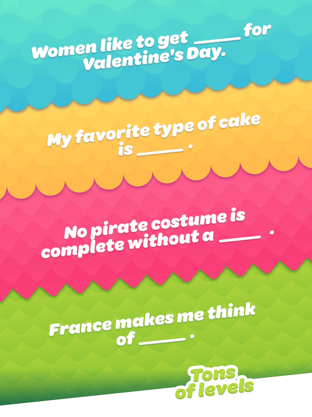 The concept is simple: a sentence with blanks and you have to find the 5 most given answers by other players to fill those blanks. For sure the funniest word game out there!