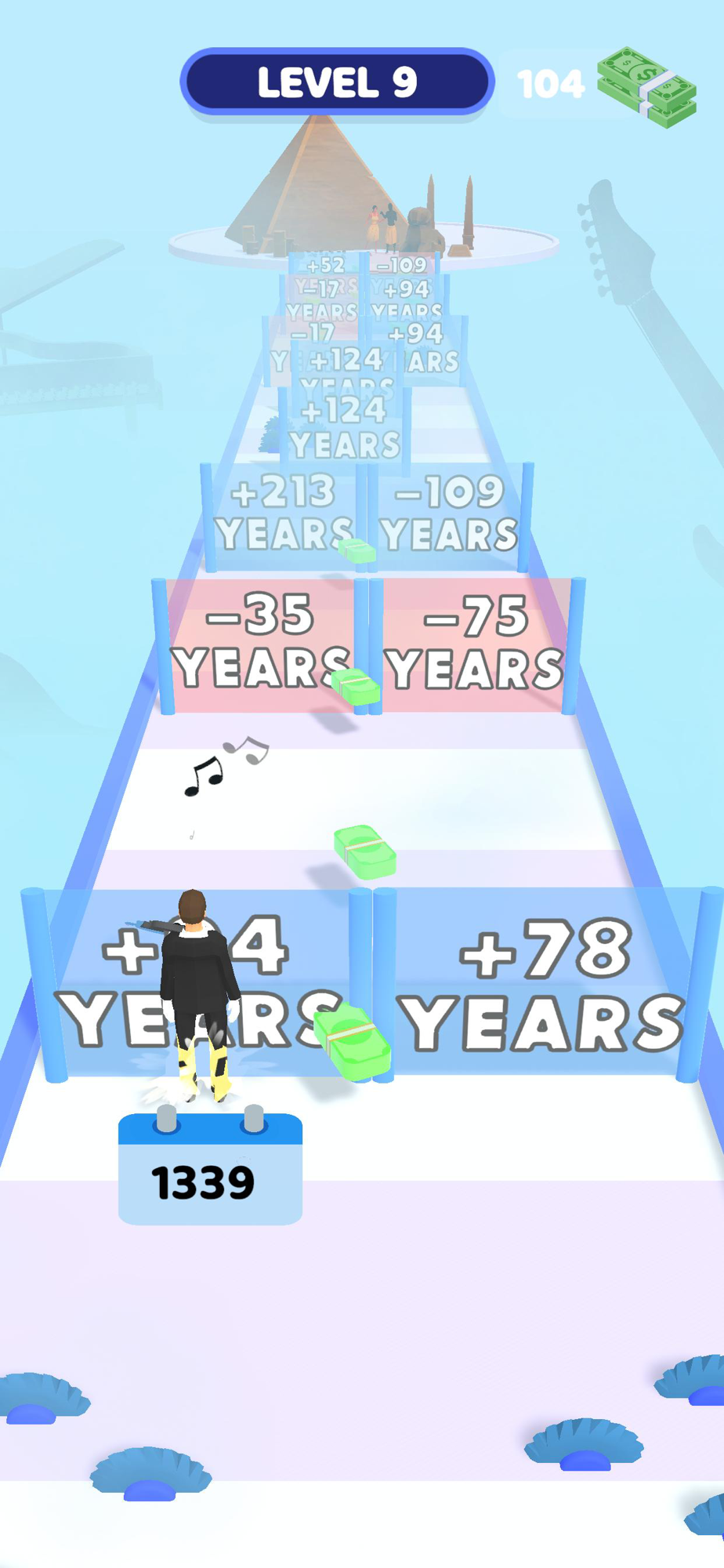 Go through the panels by advancing on the platform, finish the game with the best instrument and earn points, advance your year counter by passing through the doors and discover new instruments by transforming, give a nice concert when the game comes to the end.
