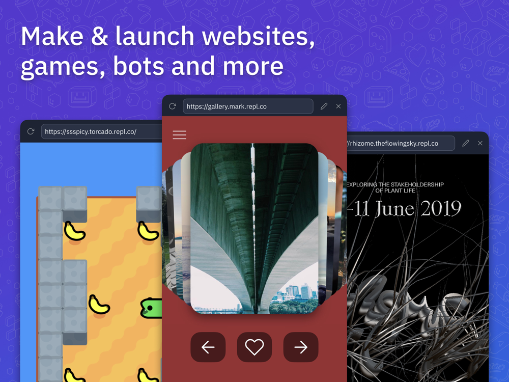 With Replit you can go from writing your first line of code to building and sharing projects with the world all from your mobile phone. We're so stoked to see what you build.